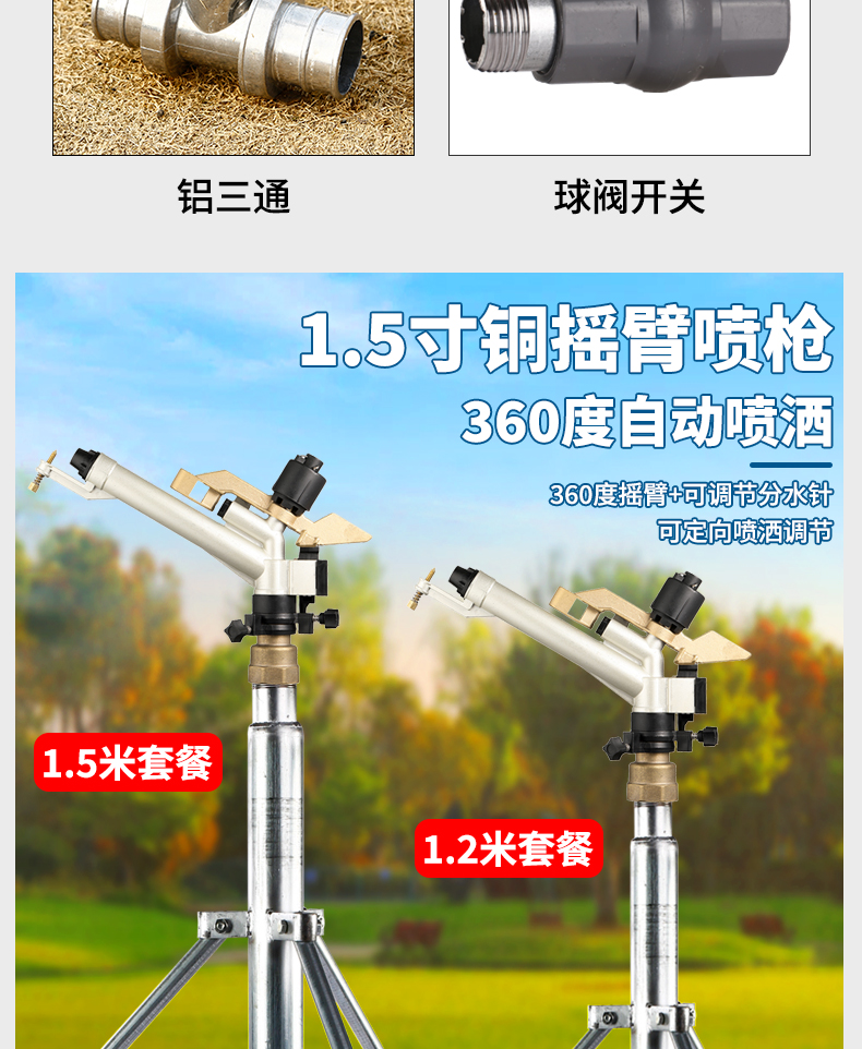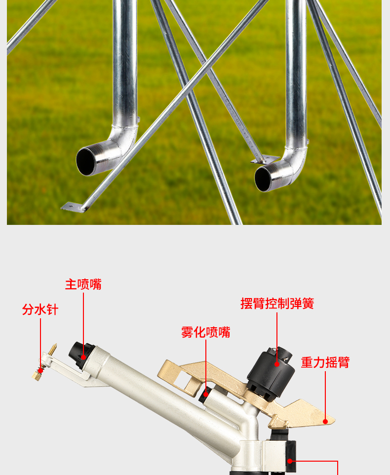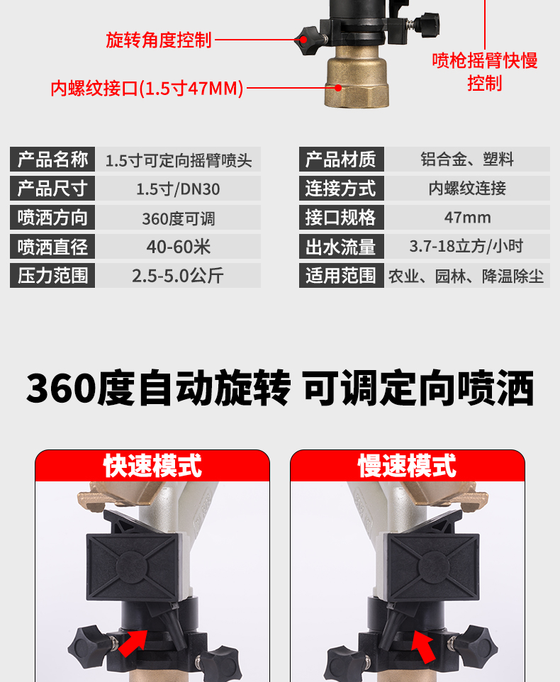 农用摇臂喷头360度自动旋转草坪浇水园林喷灌灌溉喷水器浇地