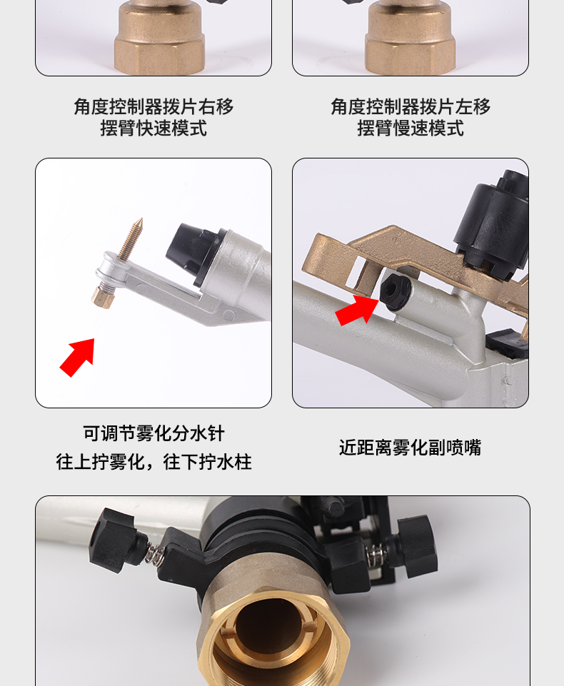 • 1寸/DN25铜摇臂喷枪+50快接 接PE/PPR/PVC管道