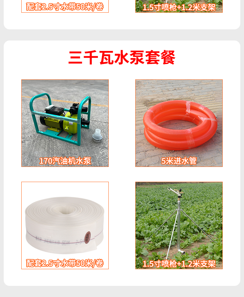 • 3千瓦离心泵+1.5寸喷枪+支架立杆+水带50米 套餐一