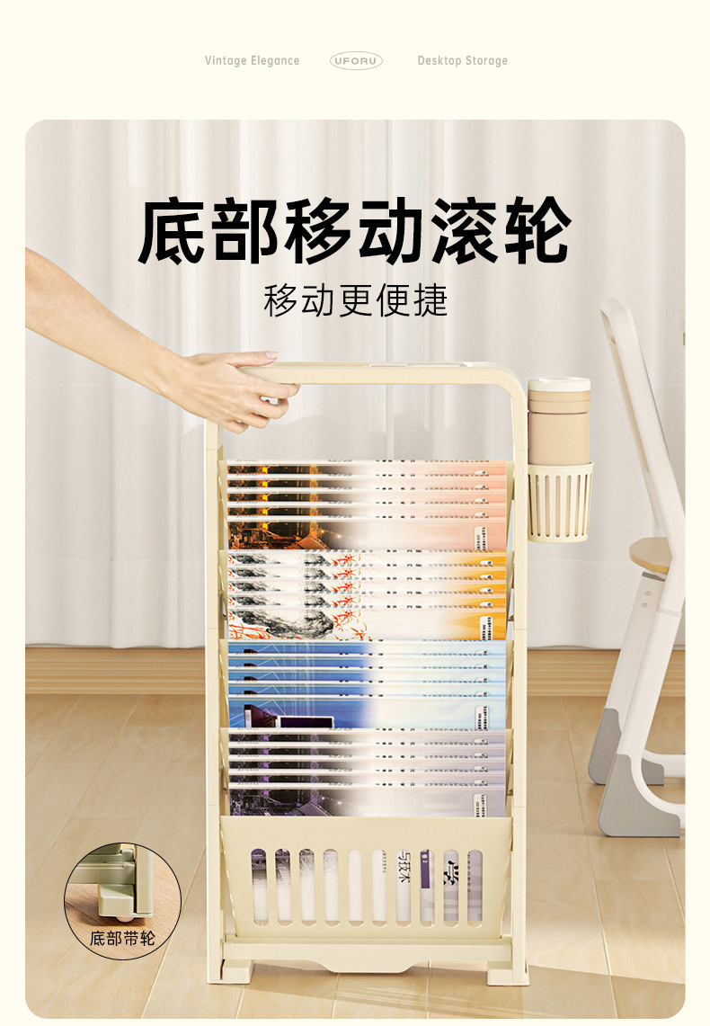 교사 책상 책장 이동식 대용량 다층 도서 보관 유물 두꺼운 롤러 바닥 스탠딩 책장스토어 가기