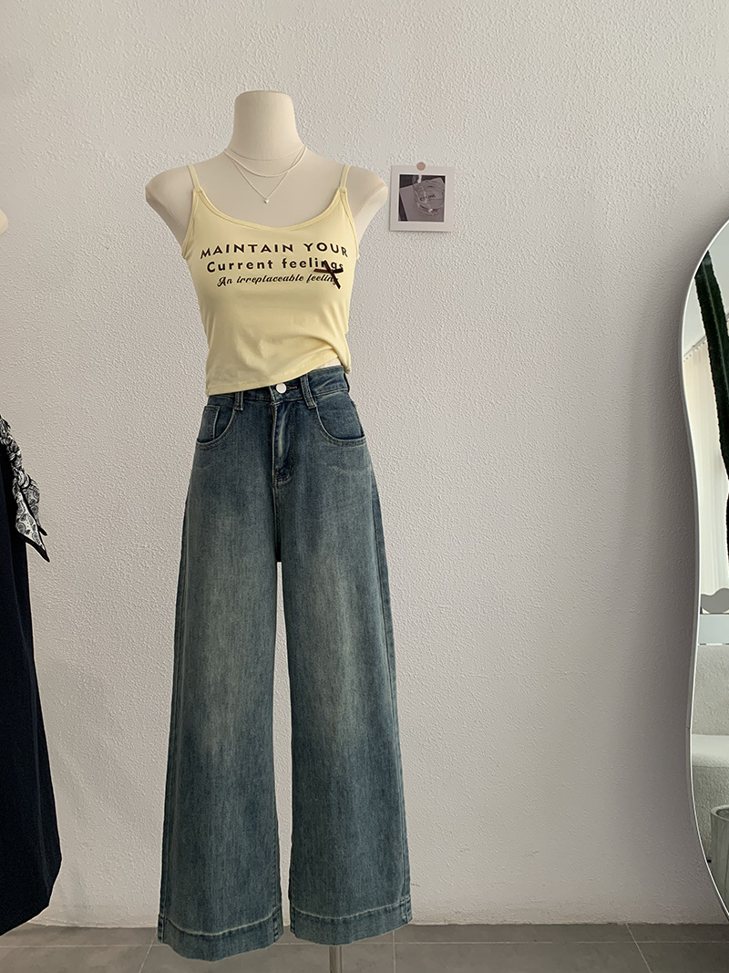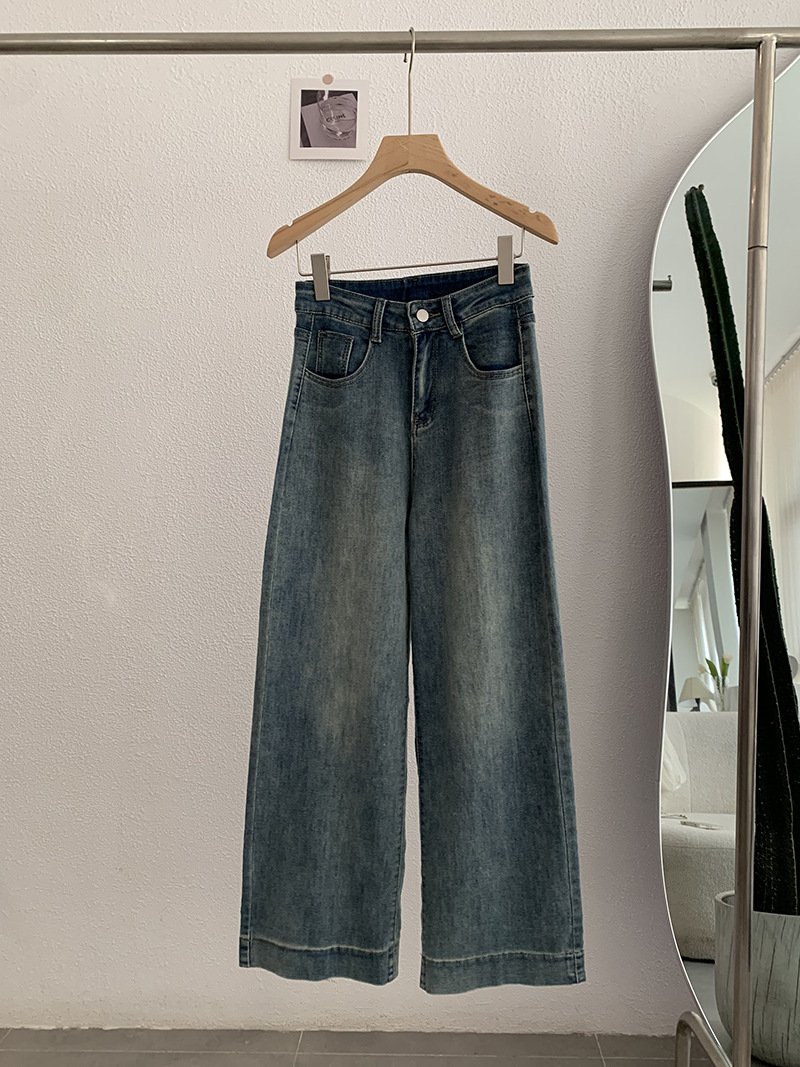 Omalai 워시 하이 웨이스트 루즈 마이크로 엘라스틱 와이드 레그 스트레이트 청바지 가을 한국 스타일 여성 패션 4113스토어 가기