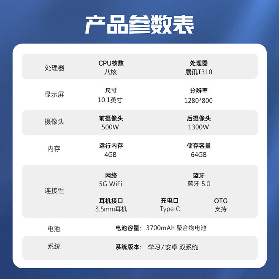 새로운 업그레이드된 5G 학습 태블릿 AI 지능형 포지셔닝 학습 초선명한 눈 보호 10inch 화면 고급 학습 기계스토어 가기