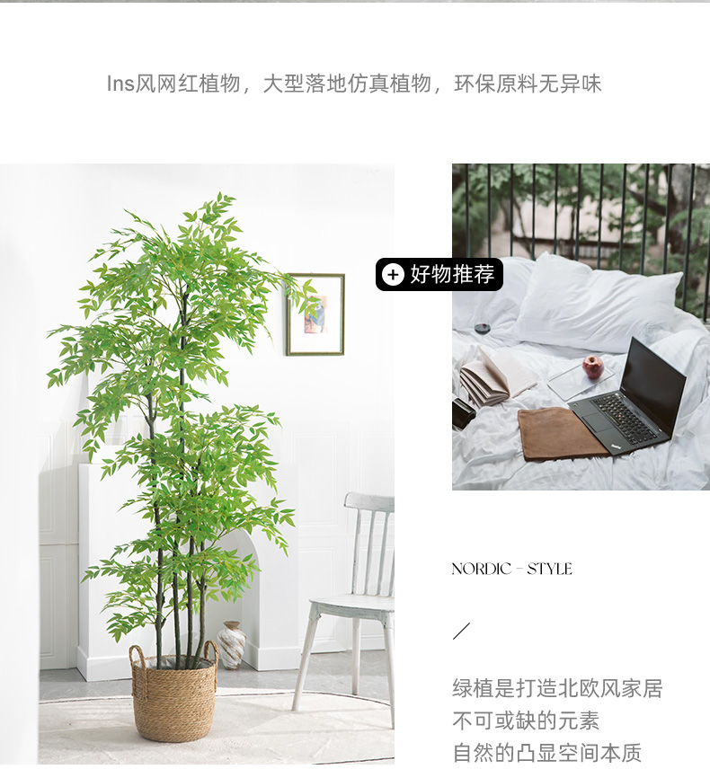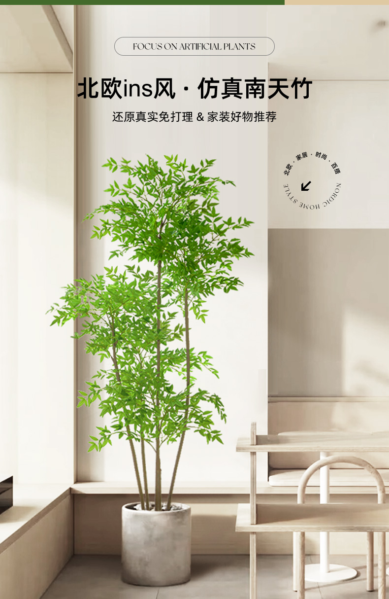 녹색 식물 남천죽 실내 대형 바닥에서 천장까지의 조명 럭셔리 화분 장식 생체 공학 가짜 나무 장식품스토어 가기