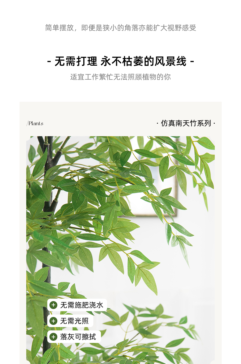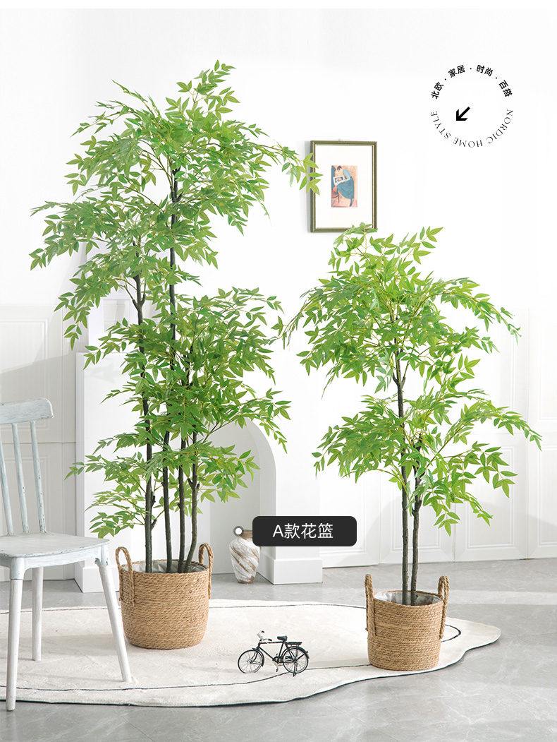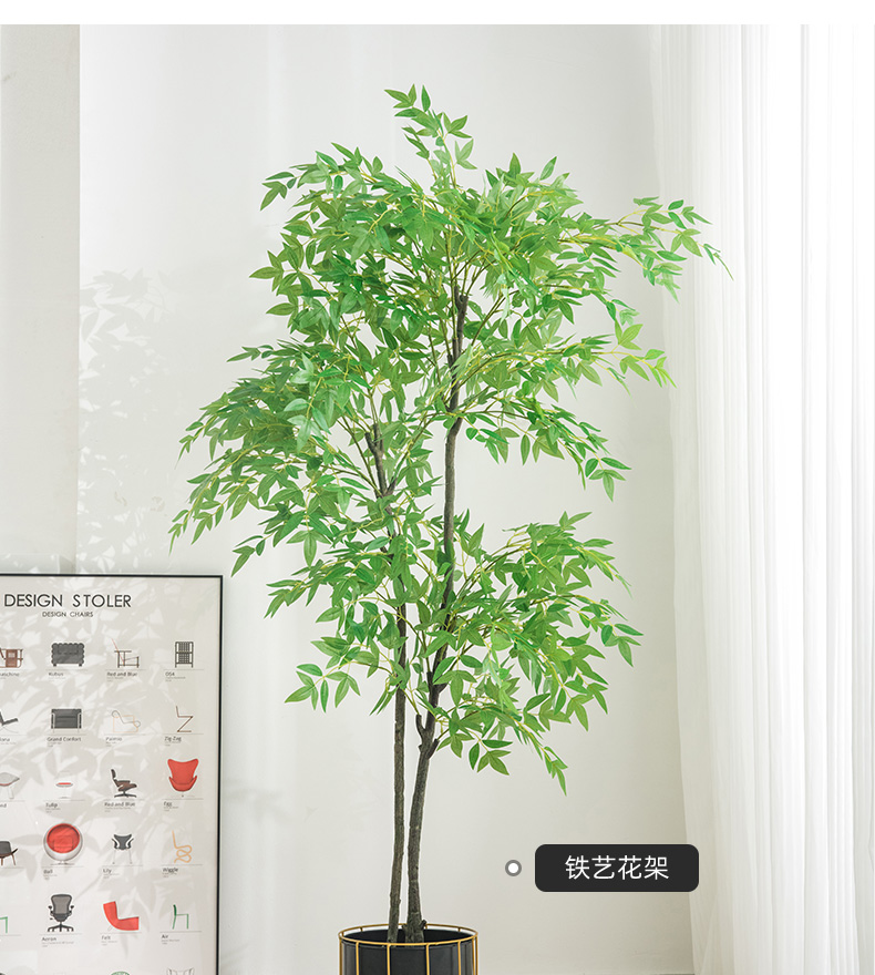 녹색 식물 남천죽 실내 대형 바닥에서 천장까지의 조명 럭셔리 화분 장식 생체 공학 가짜 나무 장식품