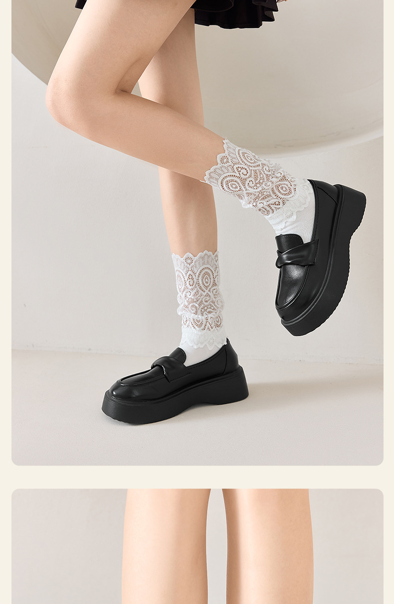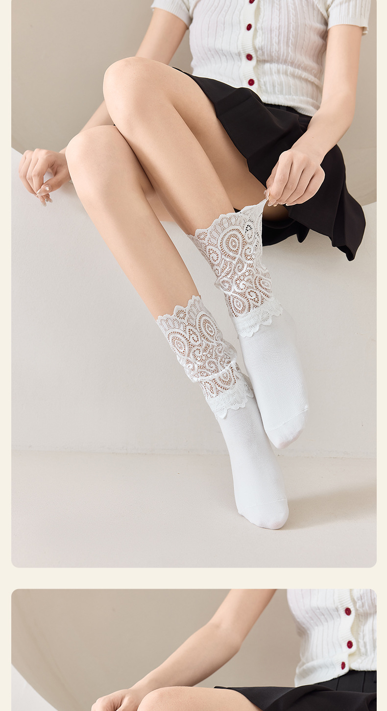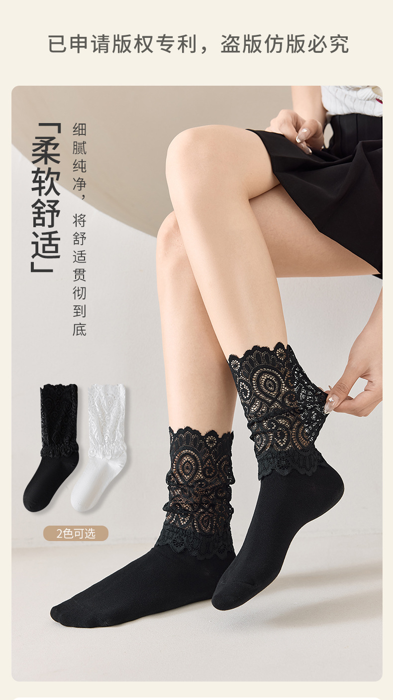 레이스 스플라이스 양말 여성용 종아리 중간 양말 ins 트렌디 여성용 양말 소녀 귀여운 푸시업 여성용 흰색 일본 댄스 양말스토어 가기