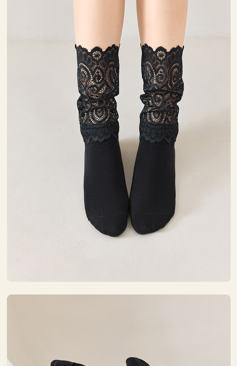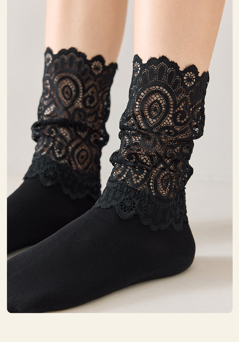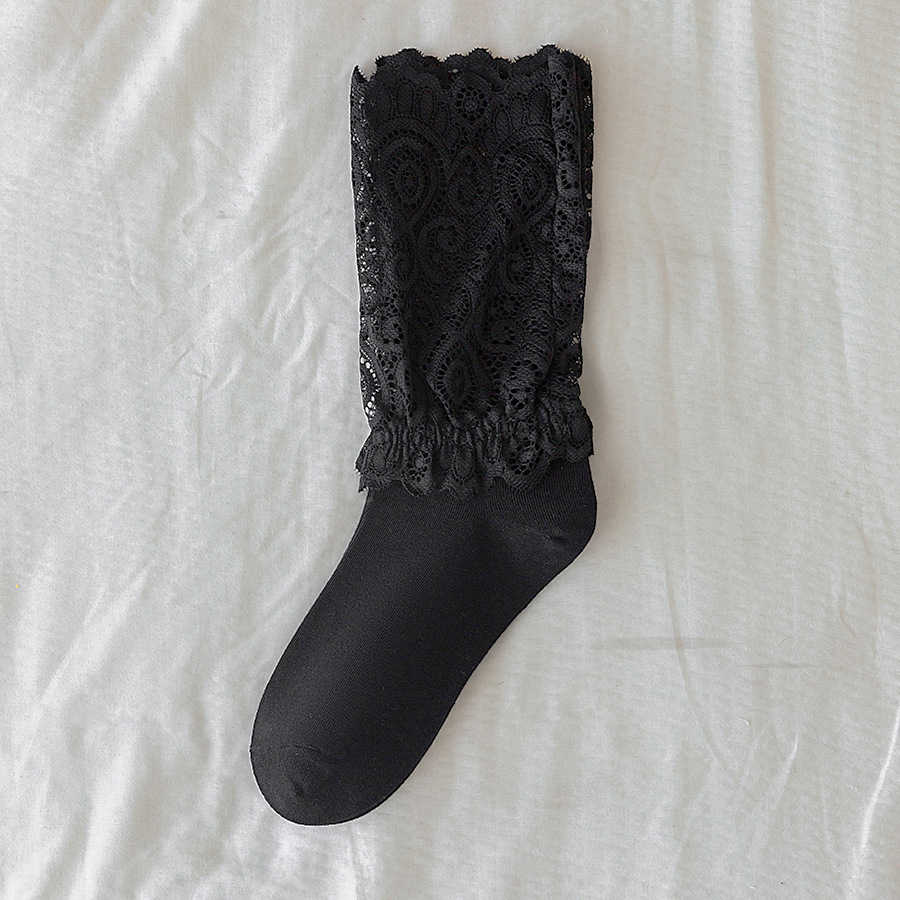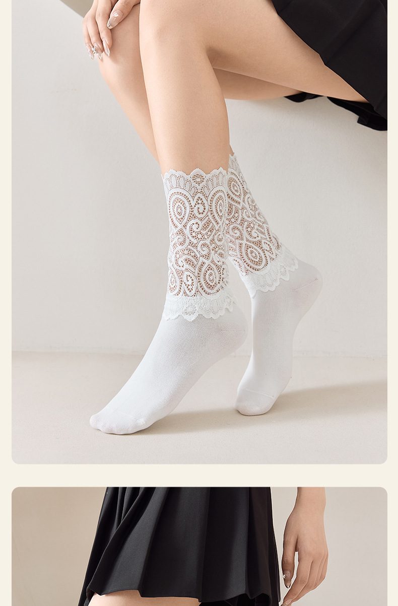 레이스 스플라이스 양말 여성용 종아리 중간 양말 ins 트렌디 여성용 양말 소녀 귀여운 푸시업 여성용 흰색 일본 댄스 양말스토어 가기