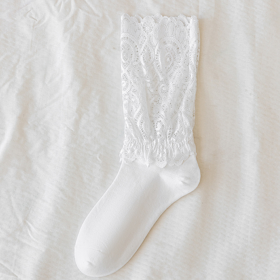 레이스 스플라이스 양말 여성용 종아리 중간 양말 ins 트렌디 여성용 양말 소녀 귀여운 푸시업 여성용 흰색 일본 댄스 양말