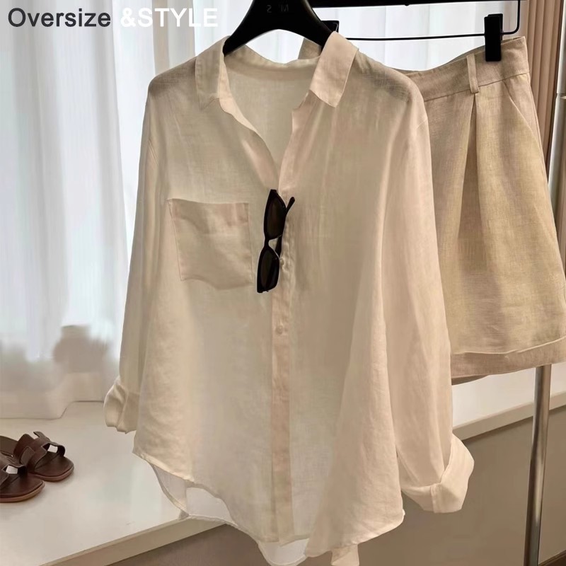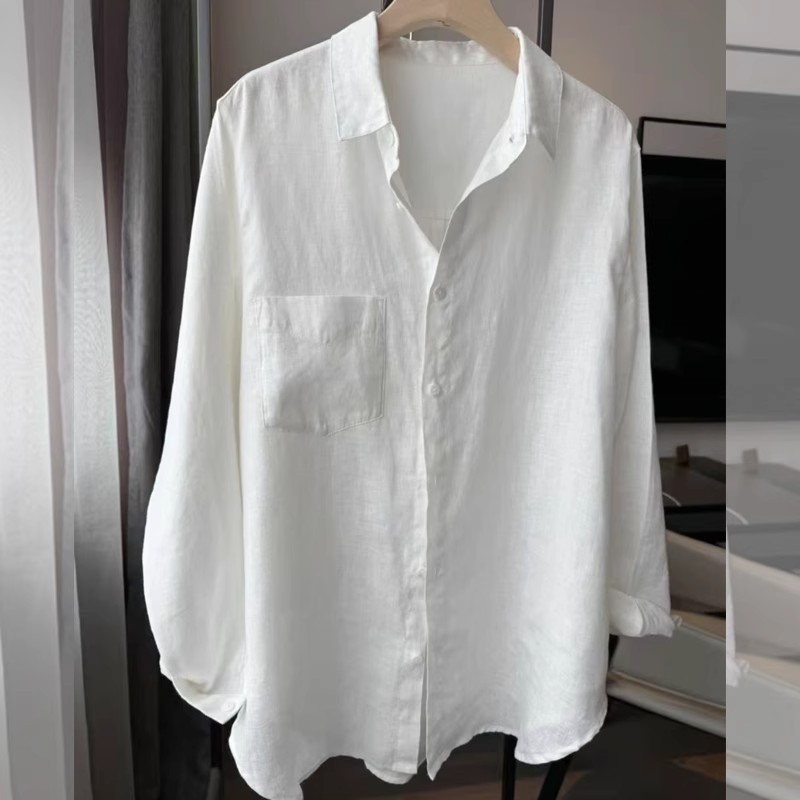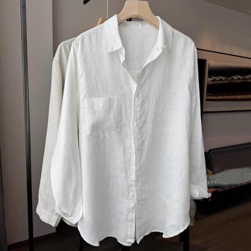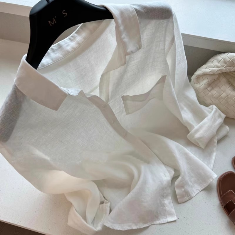 초가을 화이트 린넨 올드 머니 스타일 셔츠 여성 여름 신작 루즈 슬리밍 하이 엔드 코튼 린넨 셔츠 긴팔 탑