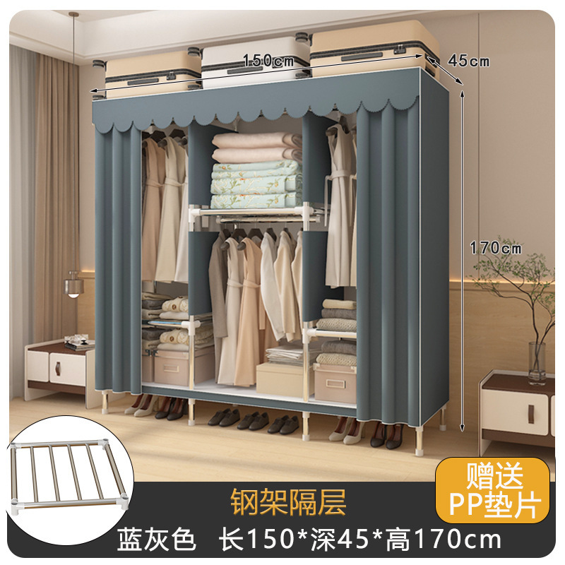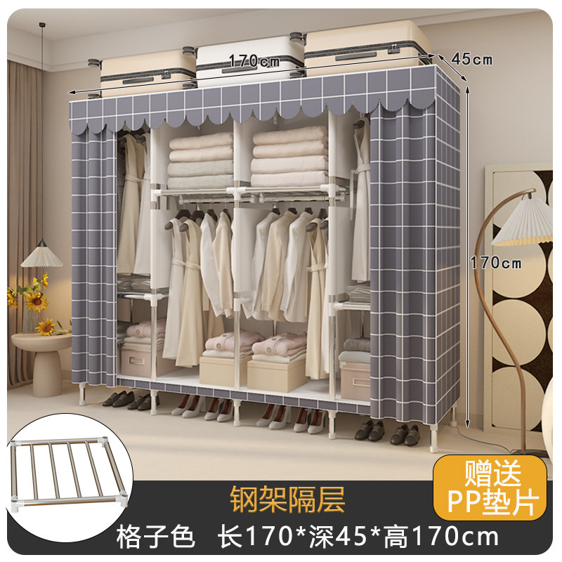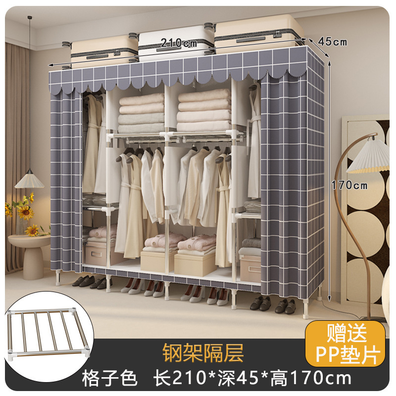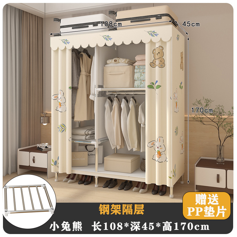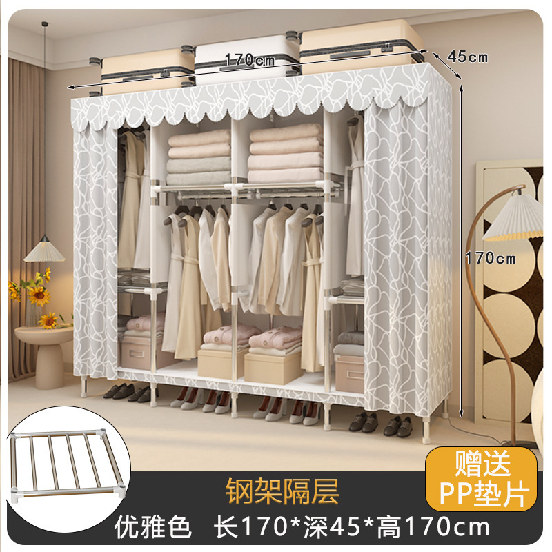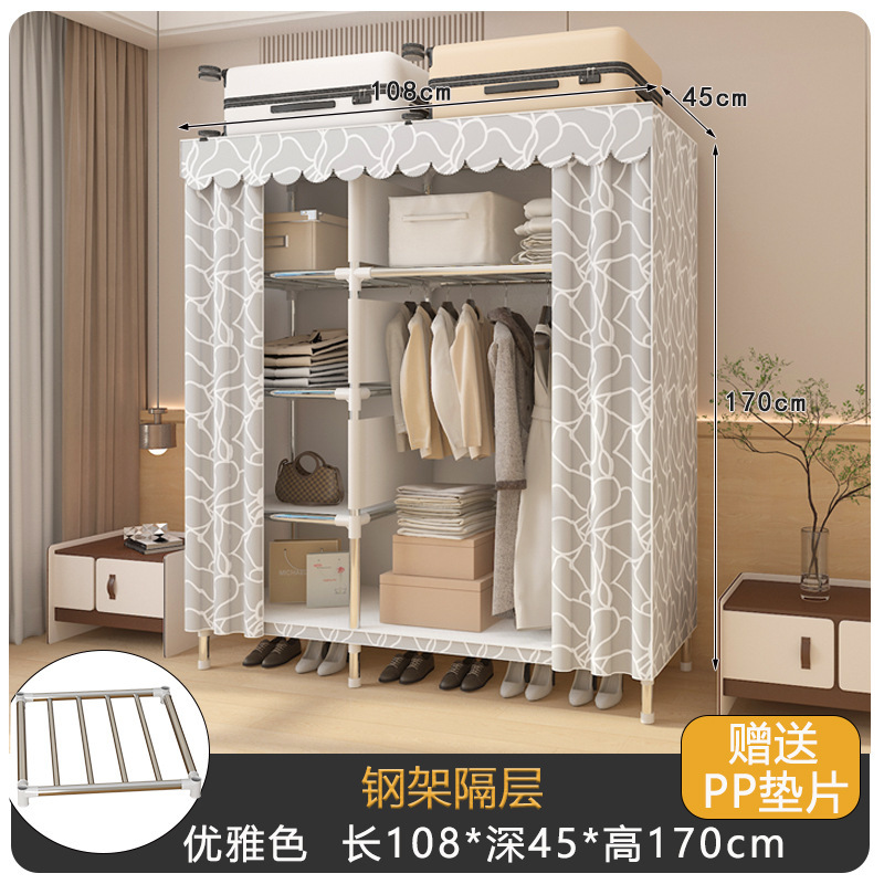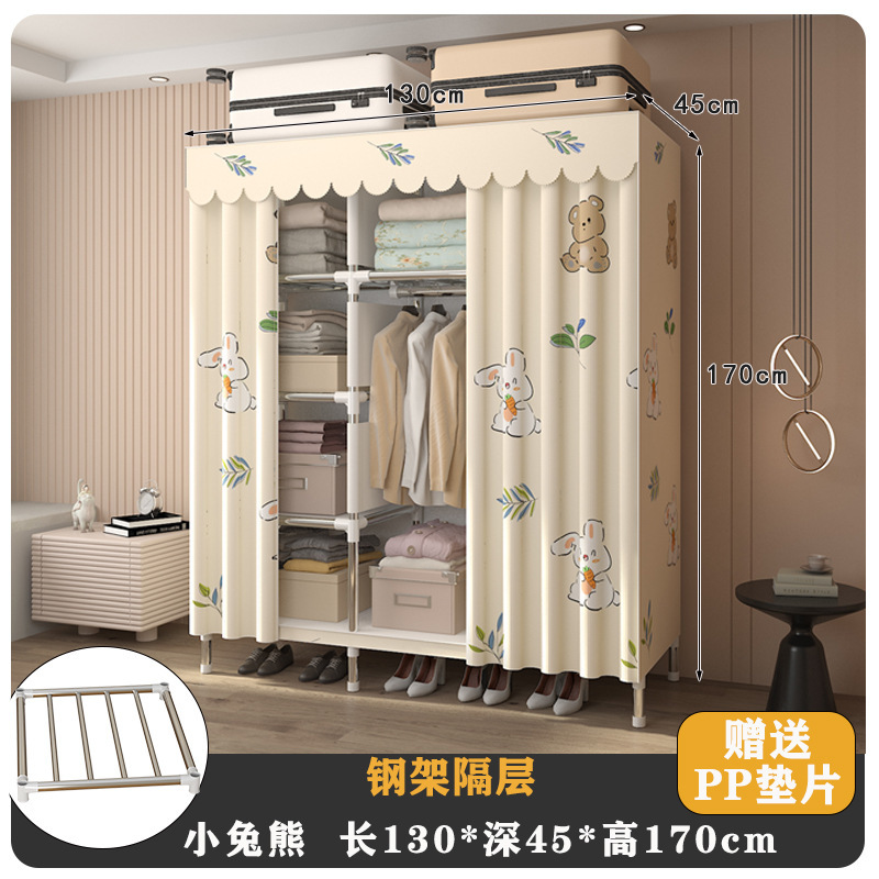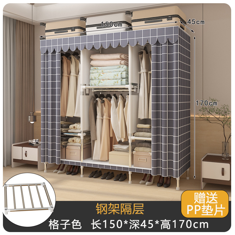 내구성이 뛰어난 강철 파이프, 튼튼한 천 옷장, 가정용 침실 조립, 전체 임대 주택 보관 캐비닛, 간단한 옷장 강철 프레임스토어 가기