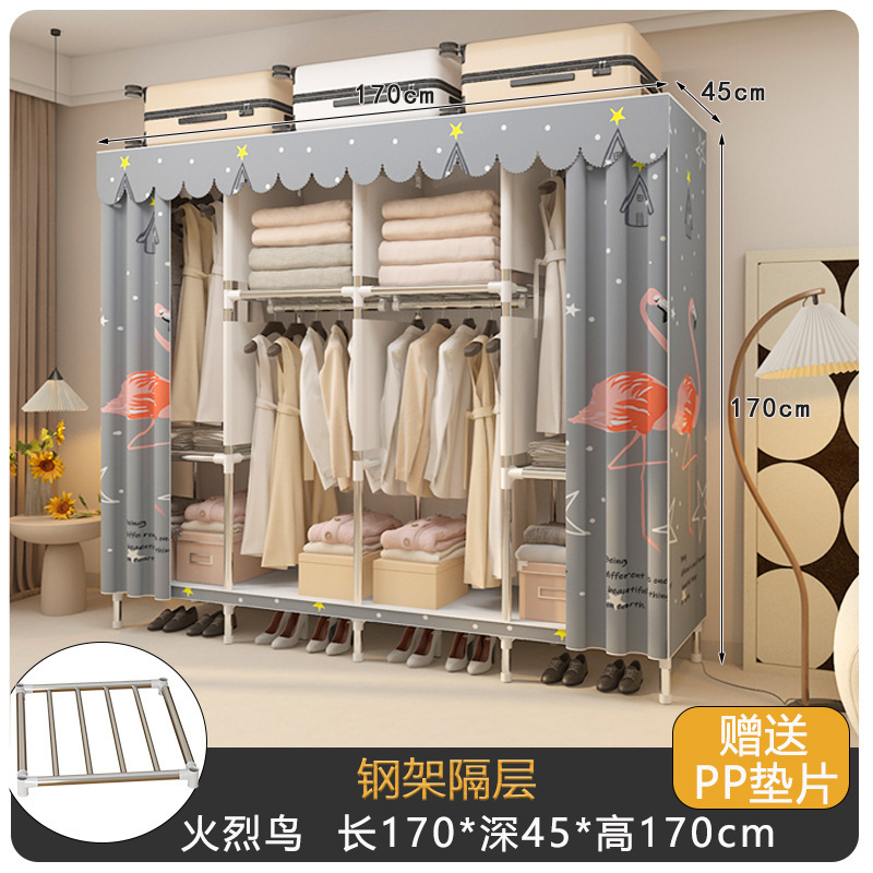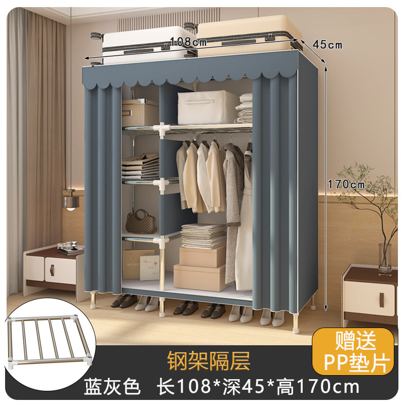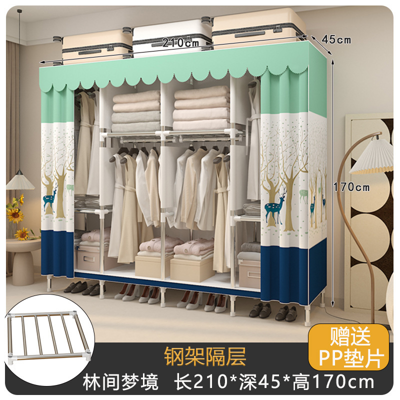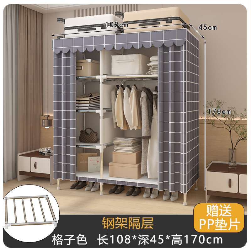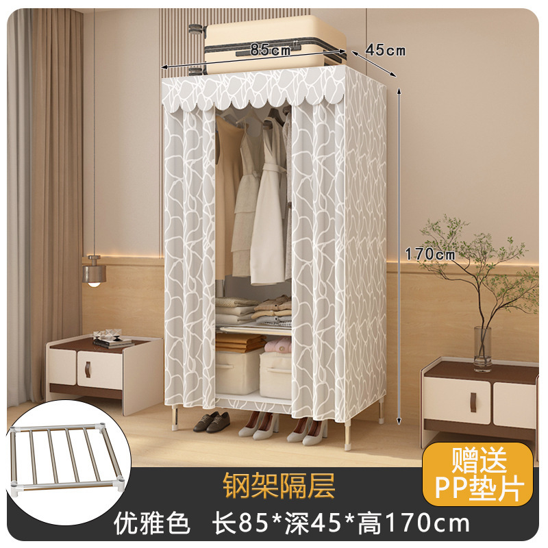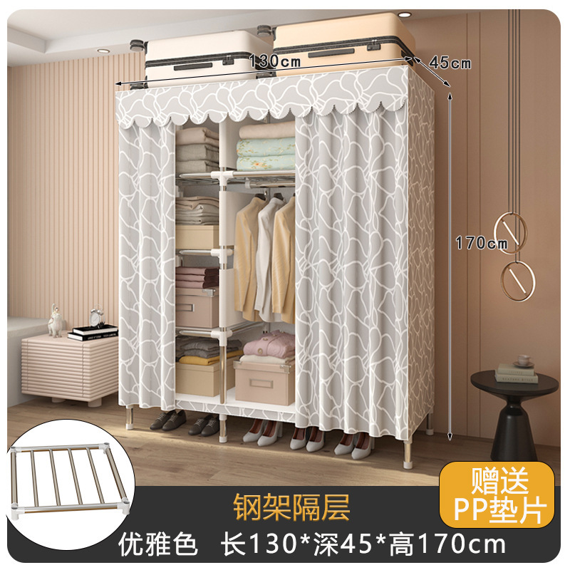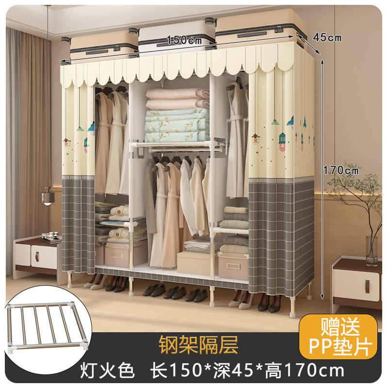 내구성이 뛰어난 강철 파이프, 튼튼한 천 옷장, 가정용 침실 조립, 전체 임대 주택 보관 캐비닛, 간단한 옷장 강철 프레임스토어 가기