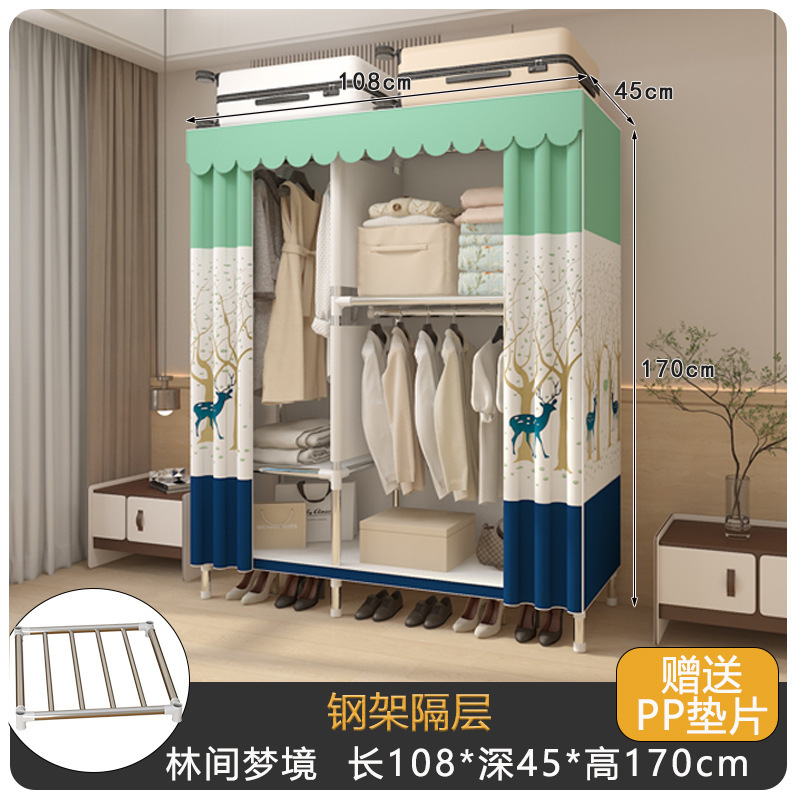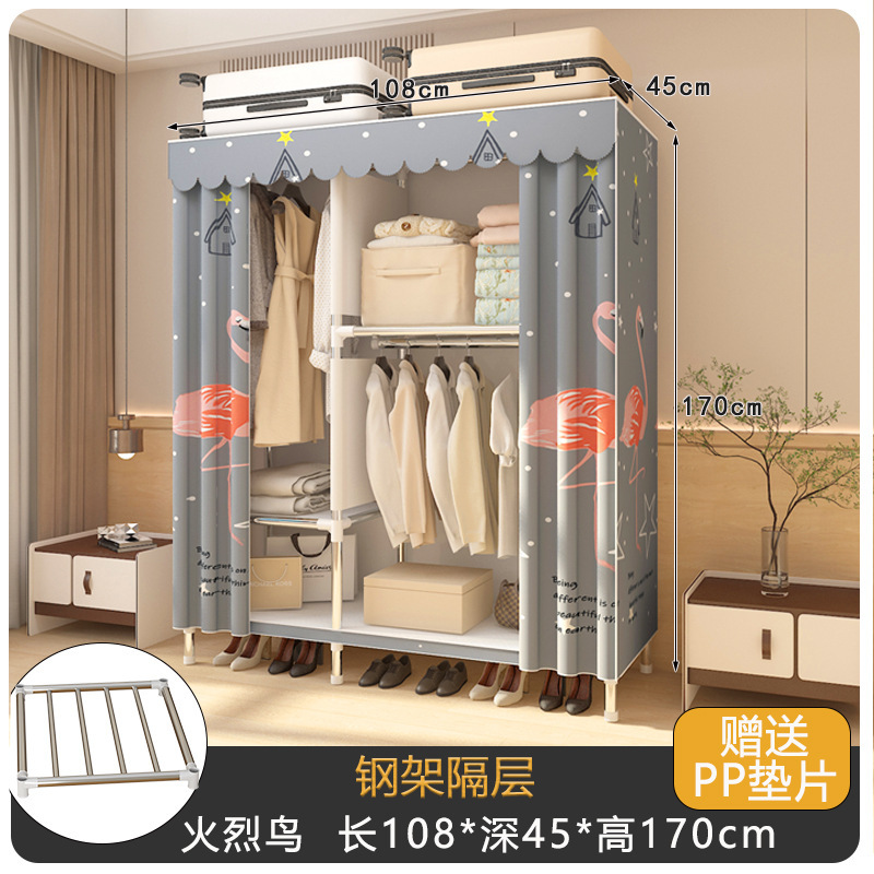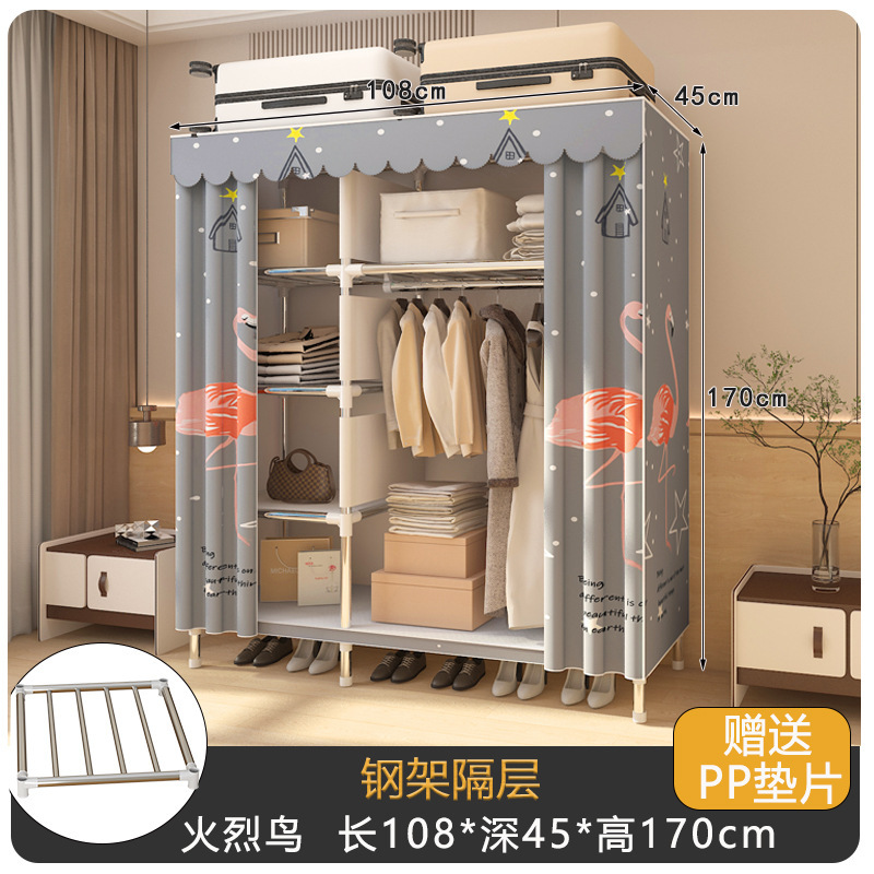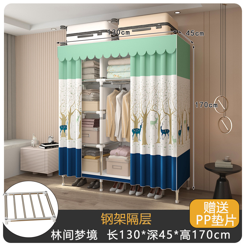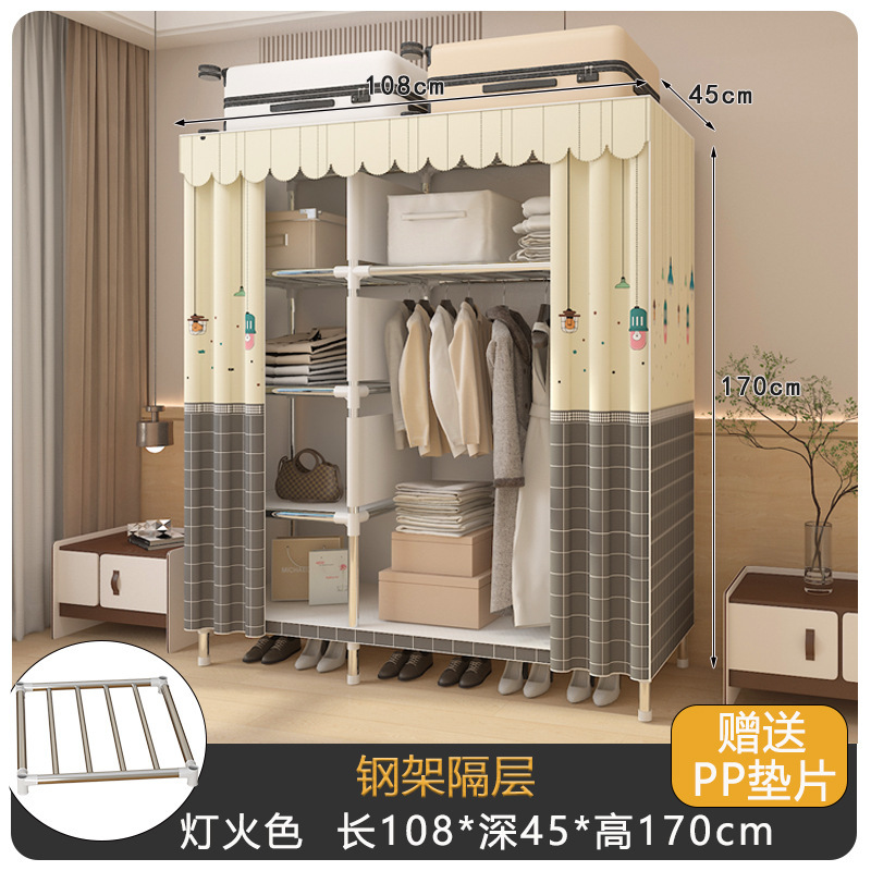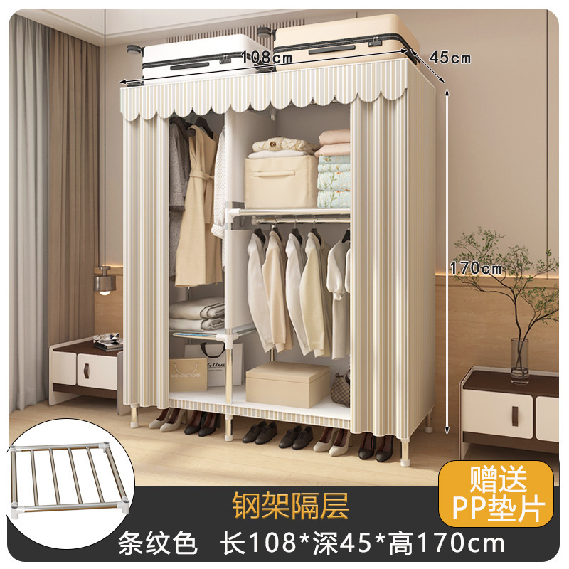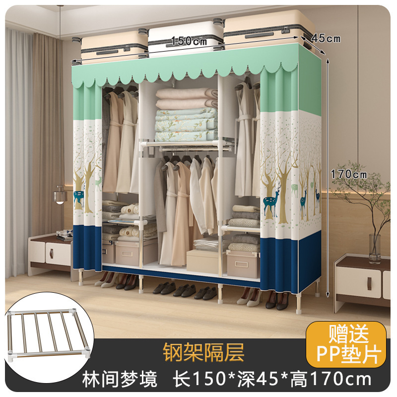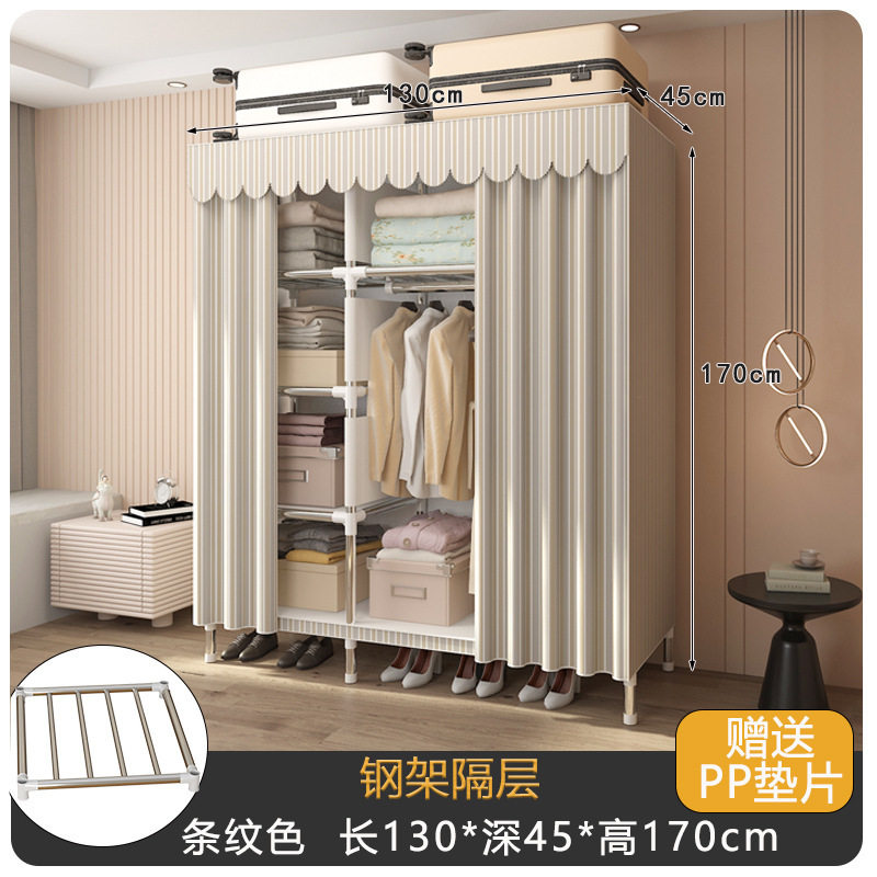 내구성이 뛰어난 강철 파이프, 튼튼한 천 옷장, 가정용 침실 조립, 전체 임대 주택 보관 캐비닛, 간단한 옷장 강철 프레임스토어 가기