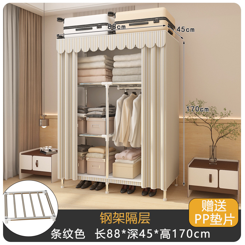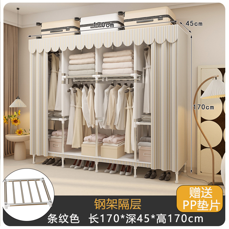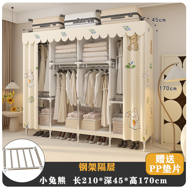 내구성이 뛰어난 강철 파이프, 튼튼한 천 옷장, 가정용 침실 조립, 전체 임대 주택 보관 캐비닛, 간단한 옷장 강철 프레임