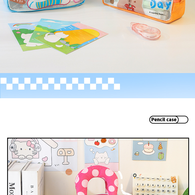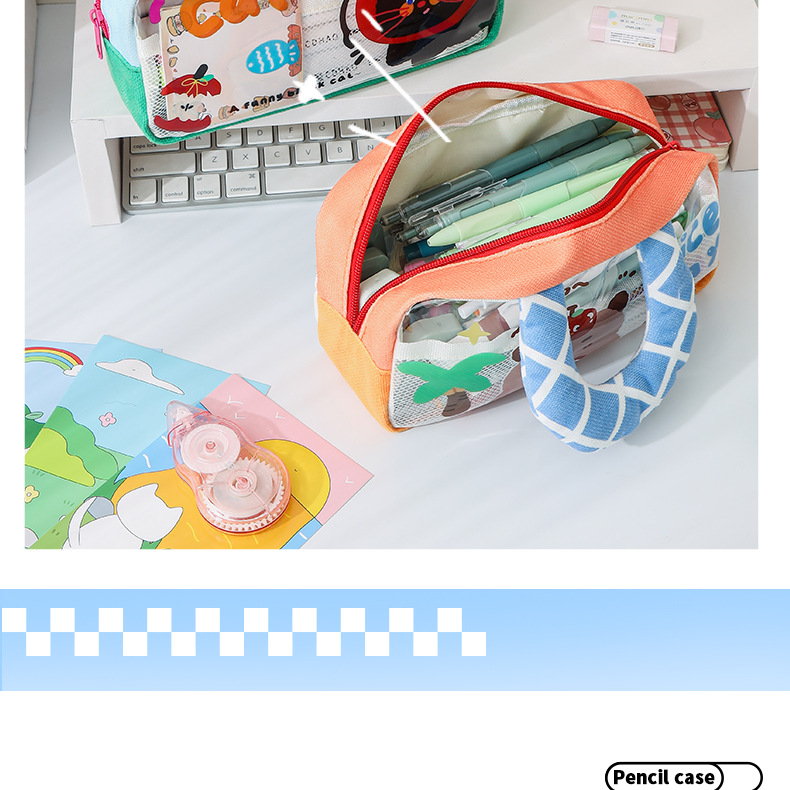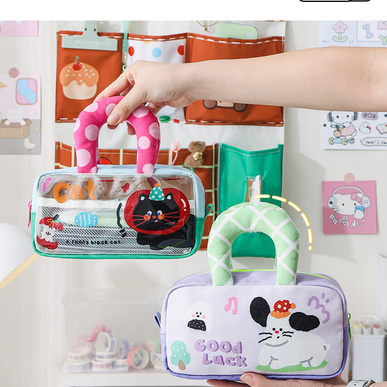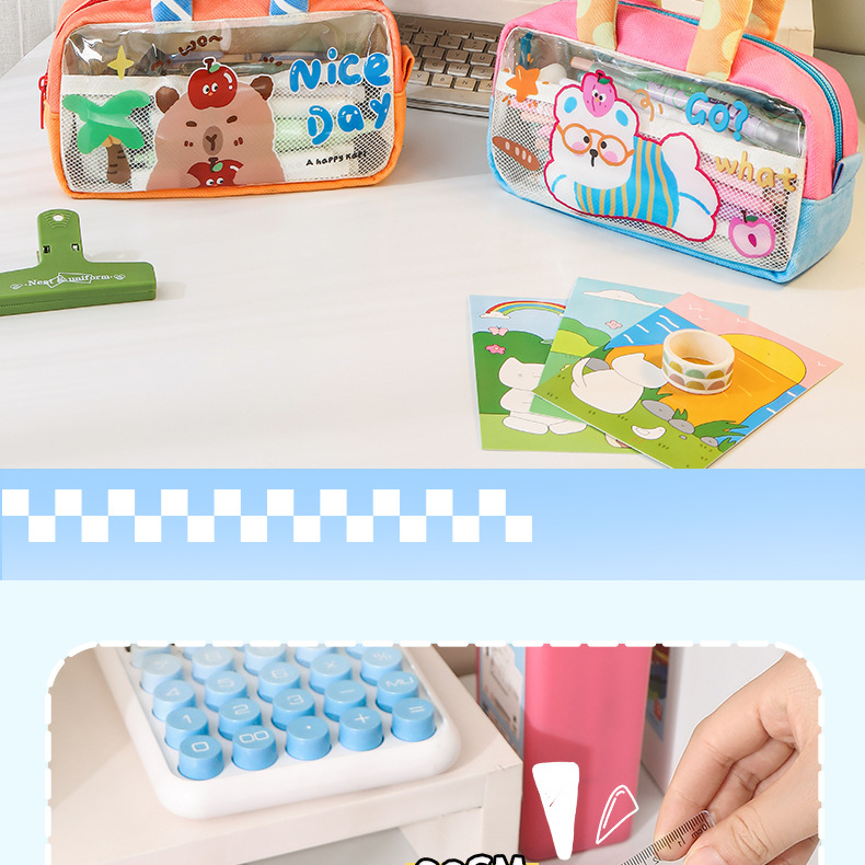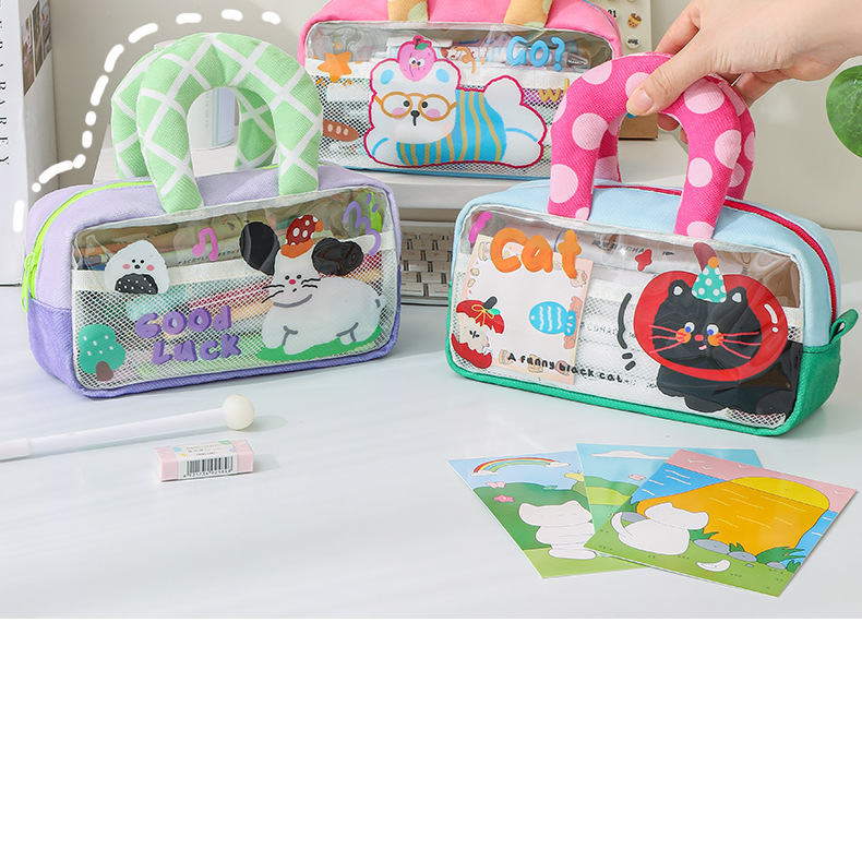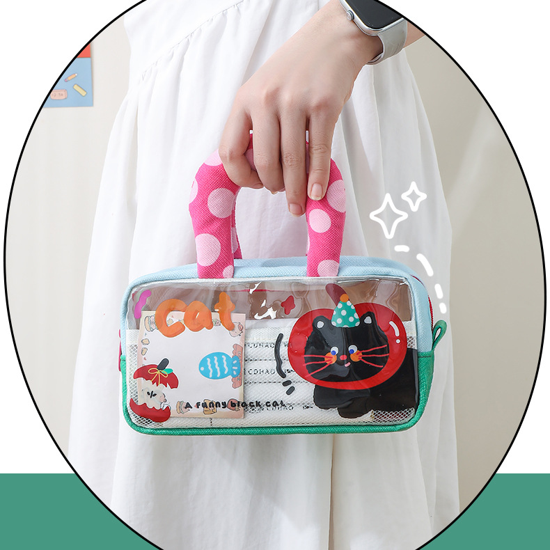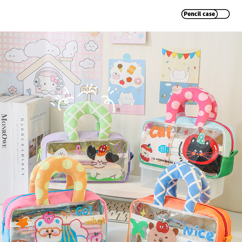 국경 간 휴대용 학생 문구 보관 가방 화장품 가방 다층 연필 가방 귀여운 만화 투명 Ins 고가치스토어 가기