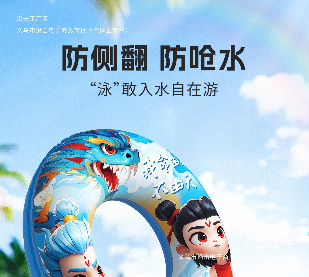 6세 이상 어린이를 위한 Nezha 수영 반지 구명 부표, 풍선 겨드랑이 반지, 두꺼운 전복 방지 플로팅 장난감 수영장스토어 가기