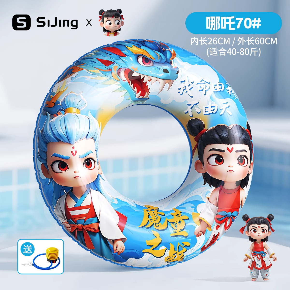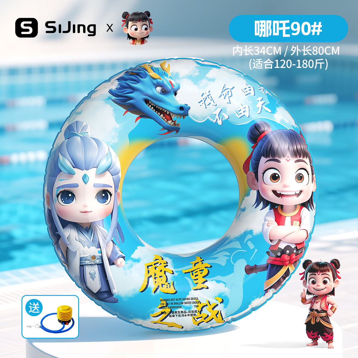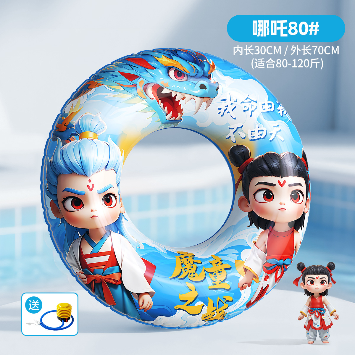 6세 이상 어린이를 위한 Nezha 수영 반지 구명 부표, 풍선 겨드랑이 반지, 두꺼운 전복 방지 플로팅 장난감 수영장