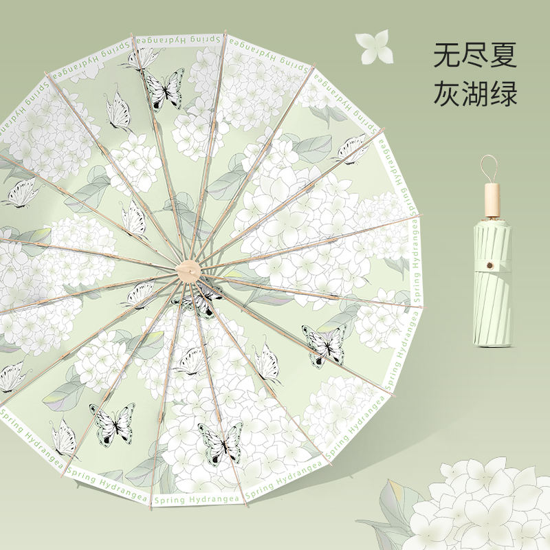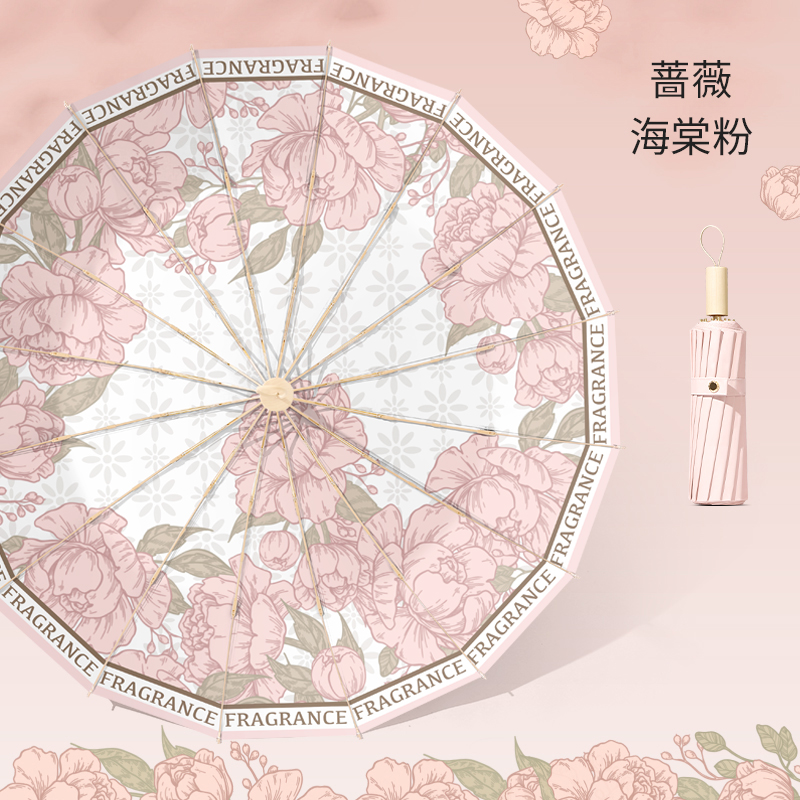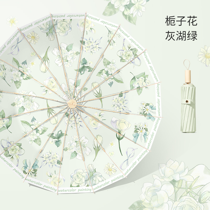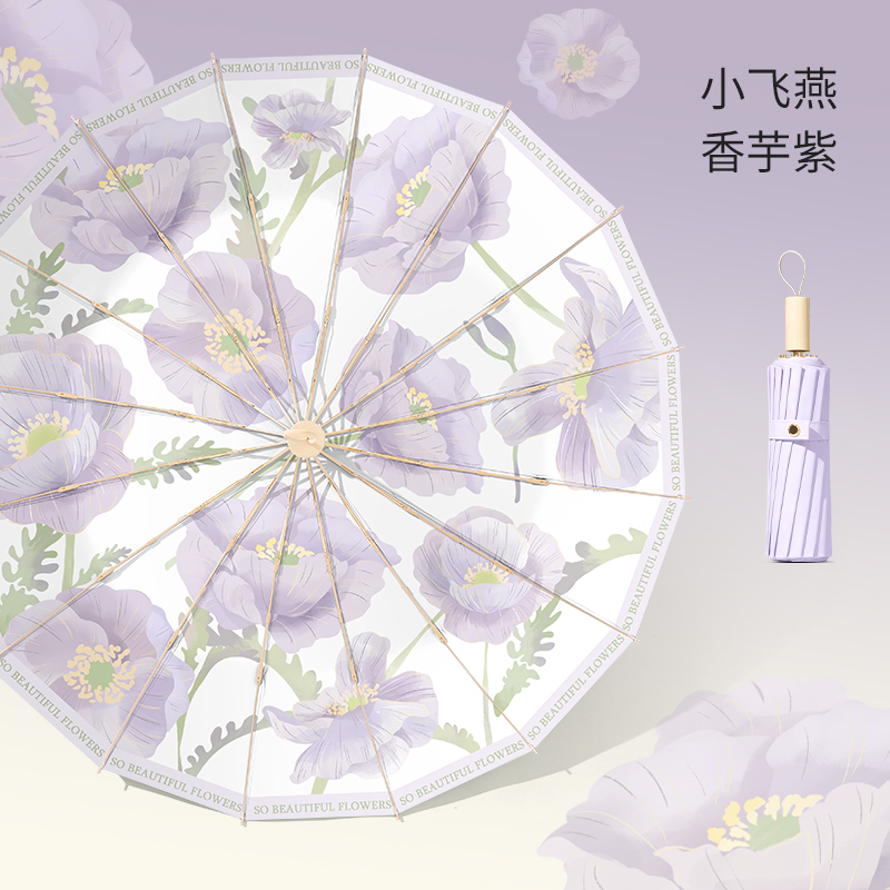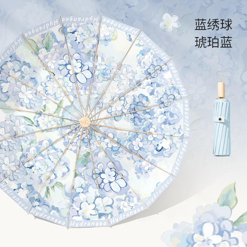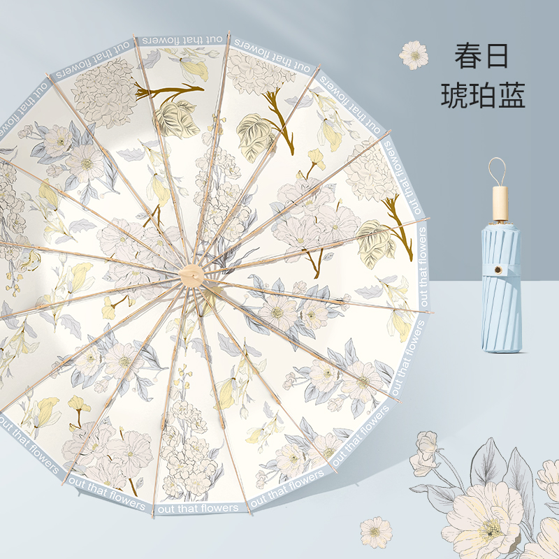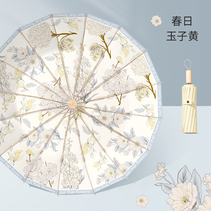 16본 우산 여성용 접이식 대형 방풍 및 비가 오는 이중 목적 태양 우산 자외선 차단 및 자외선 차단 파라솔