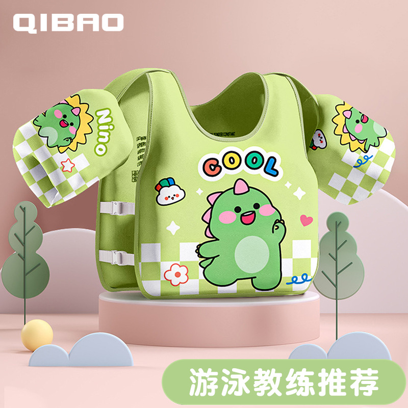 • 부력 조끼 - 녹색 작은 공룡 [아기 10-38.5kg 권장] 큰 부력 및 팽창 필요 없음