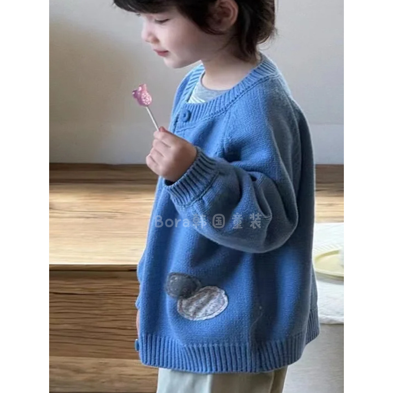 소년 스웨터 아동 스웨터 가을 2024 신상 베이비 블루 가디건 트렌디 보라 한국스토어 가기