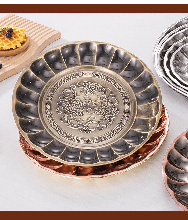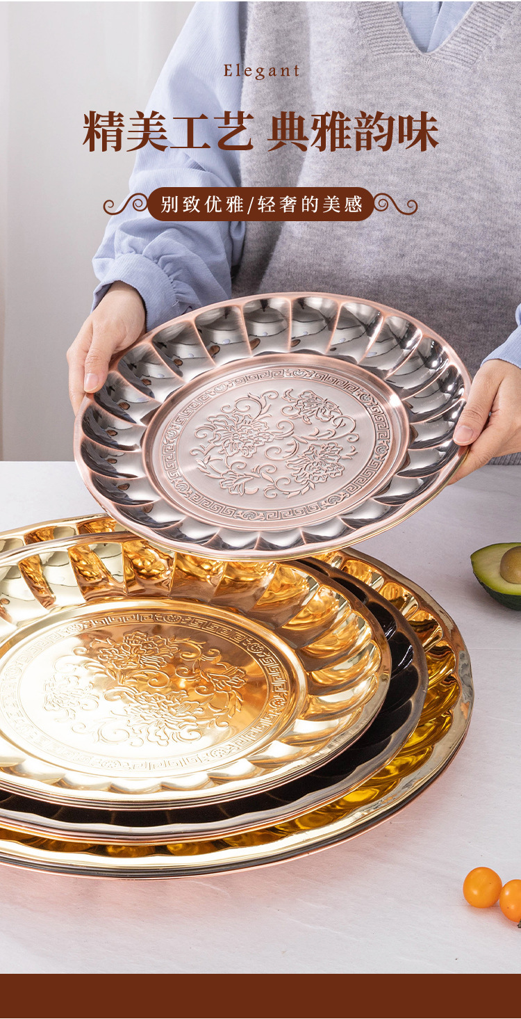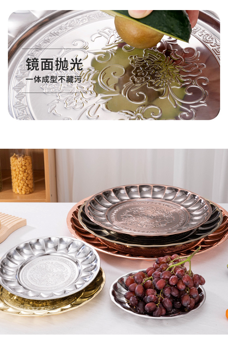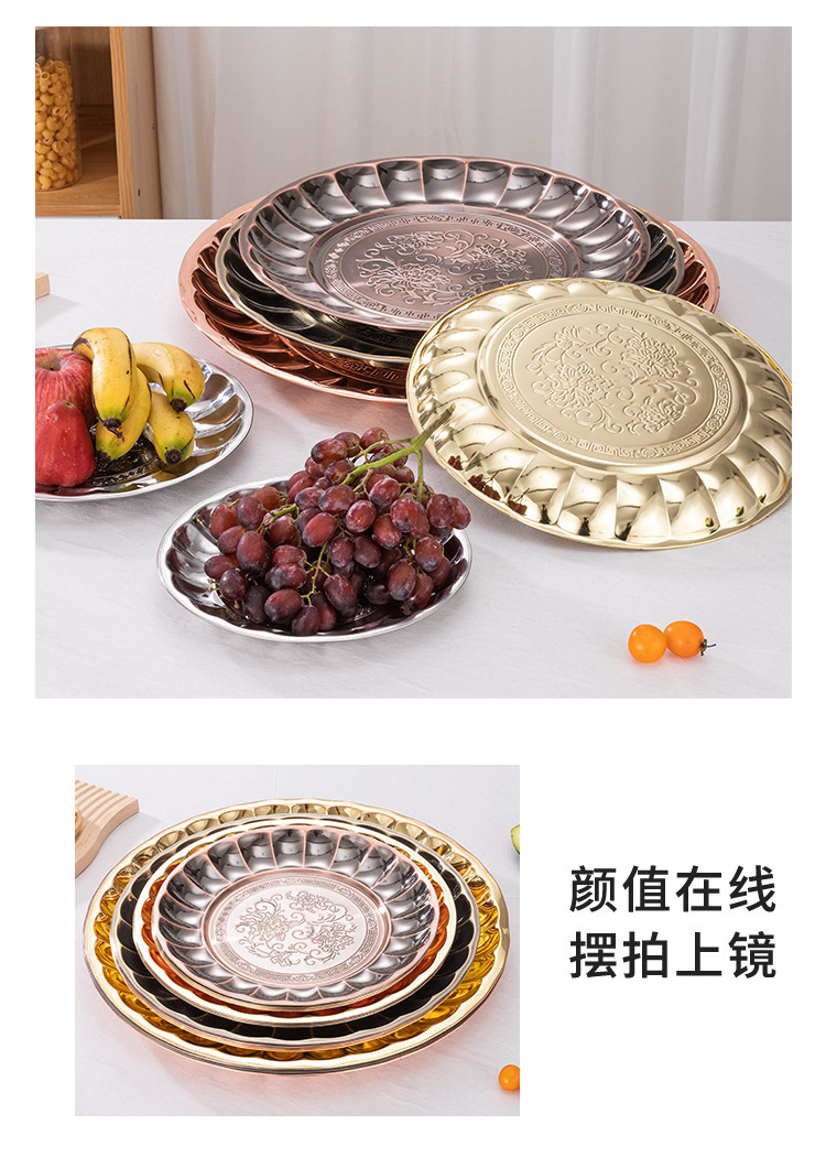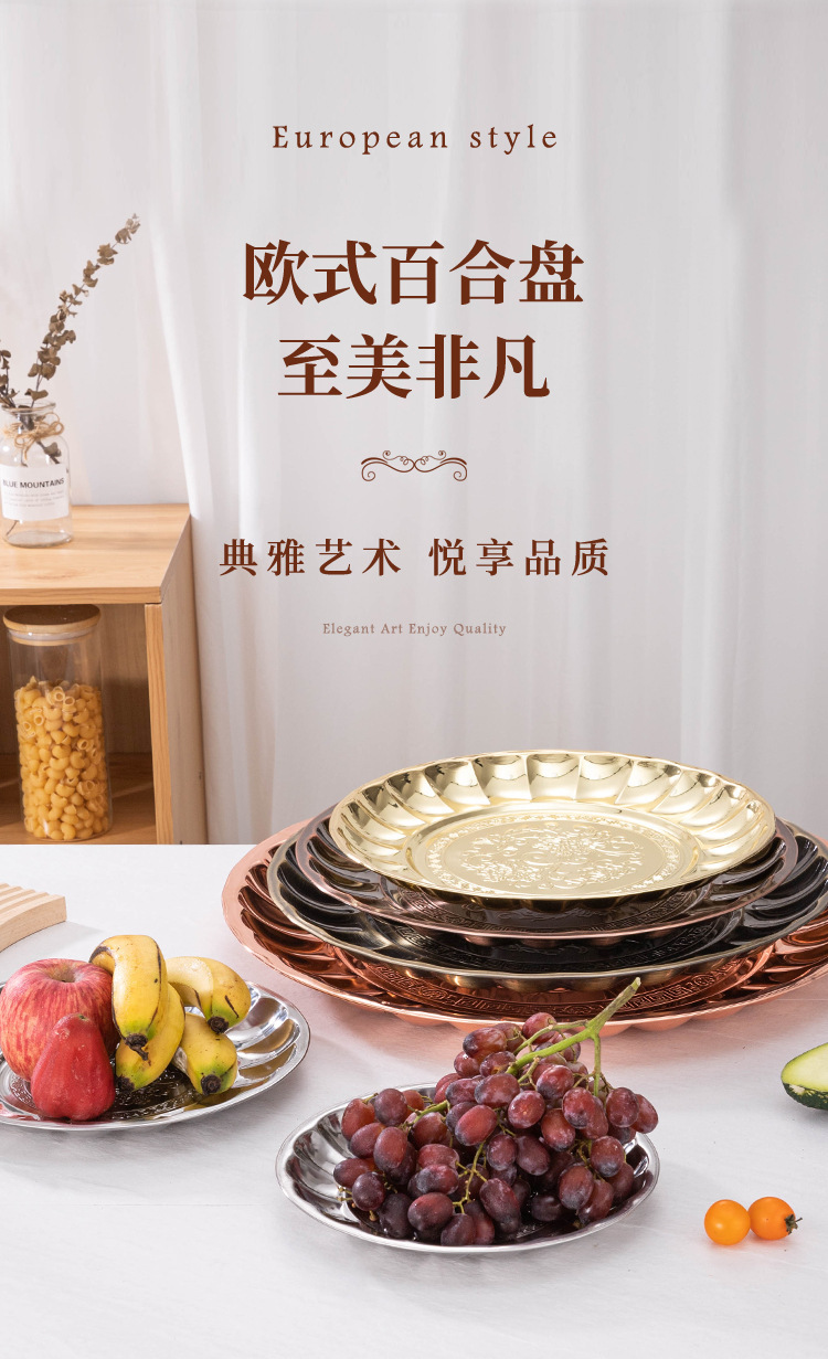 국경 간 대외 무역 스테인레스 스틸 백합 트레이 복고풍 빛 럭셔리 대형 트레이 홈 다이닝 트레이 요리 준비 트레이 과일 트레이 도매