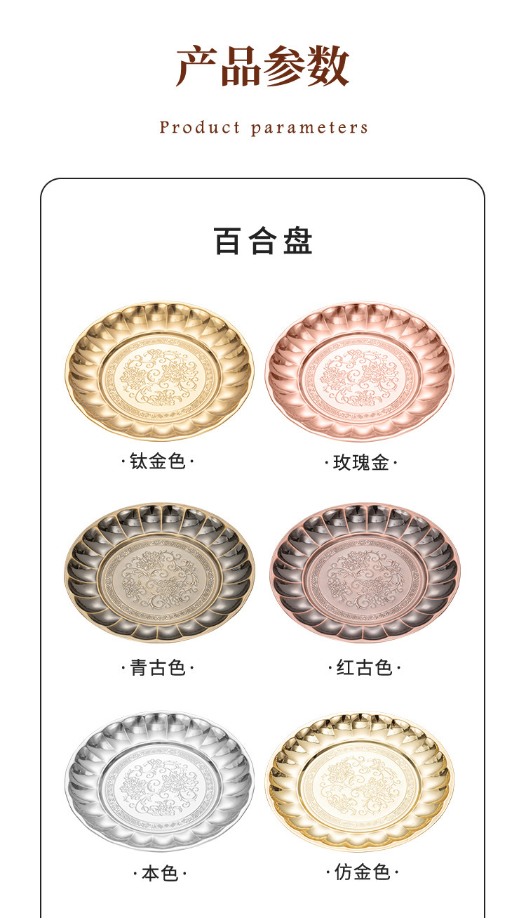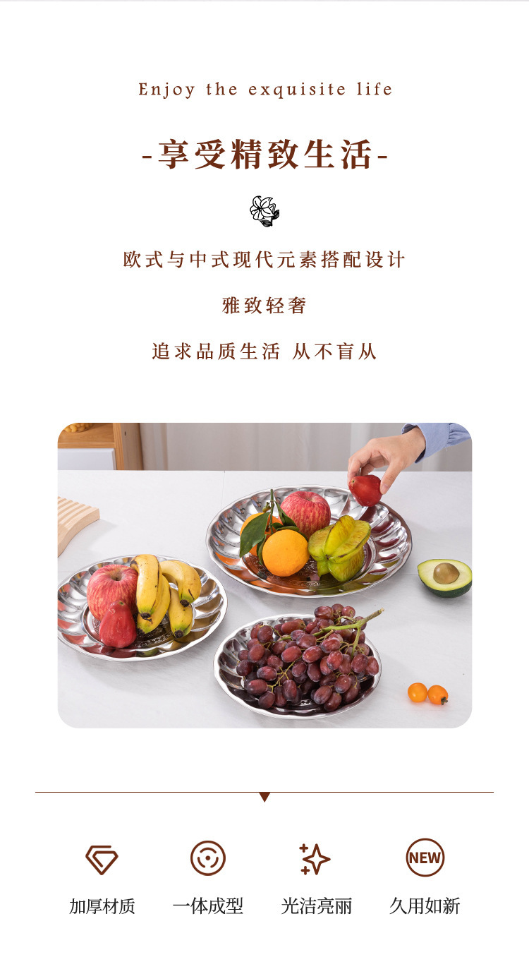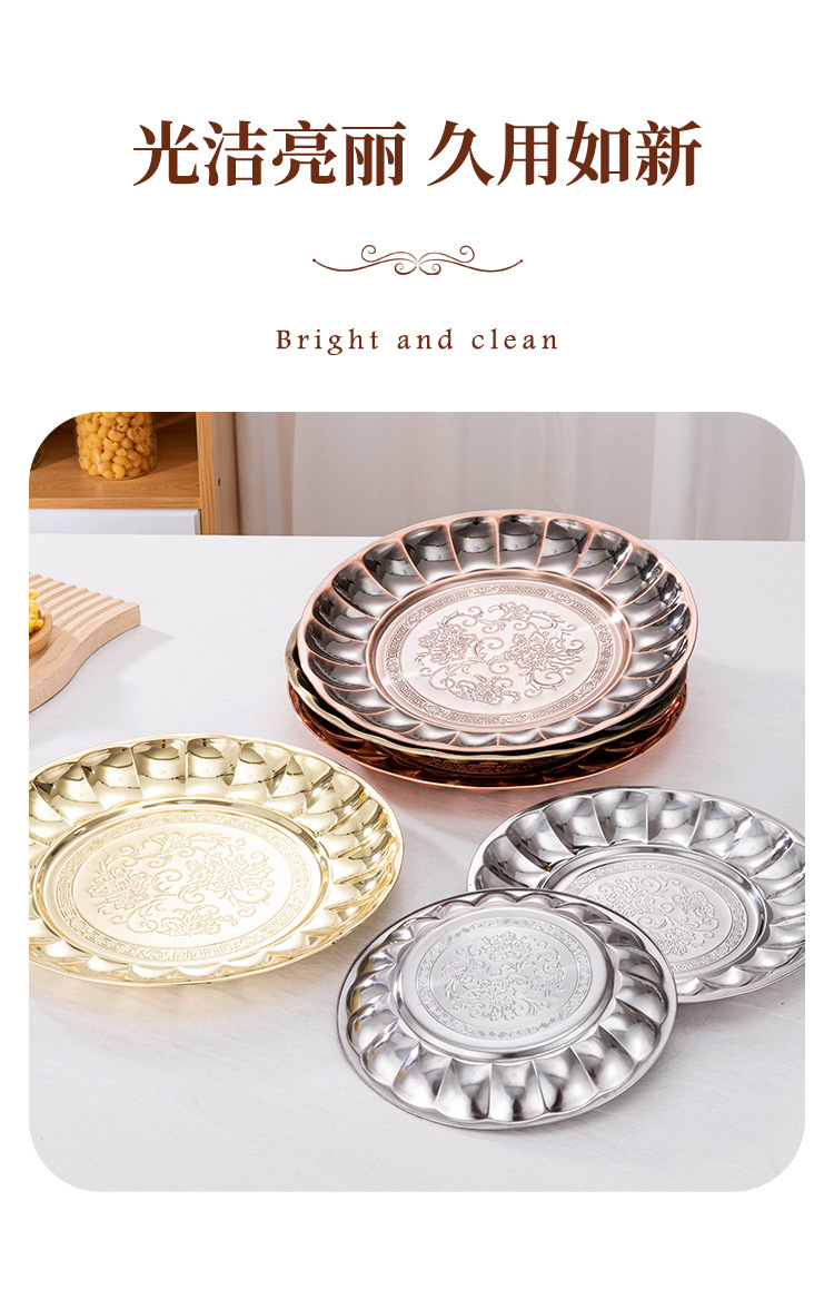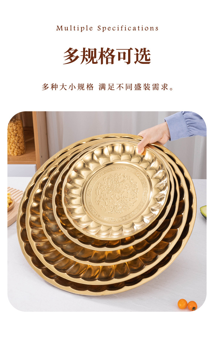 국경 간 대외 무역 스테인레스 스틸 백합 트레이 복고풍 빛 럭셔리 대형 트레이 홈 다이닝 트레이 요리 준비 트레이 과일 트레이 도매