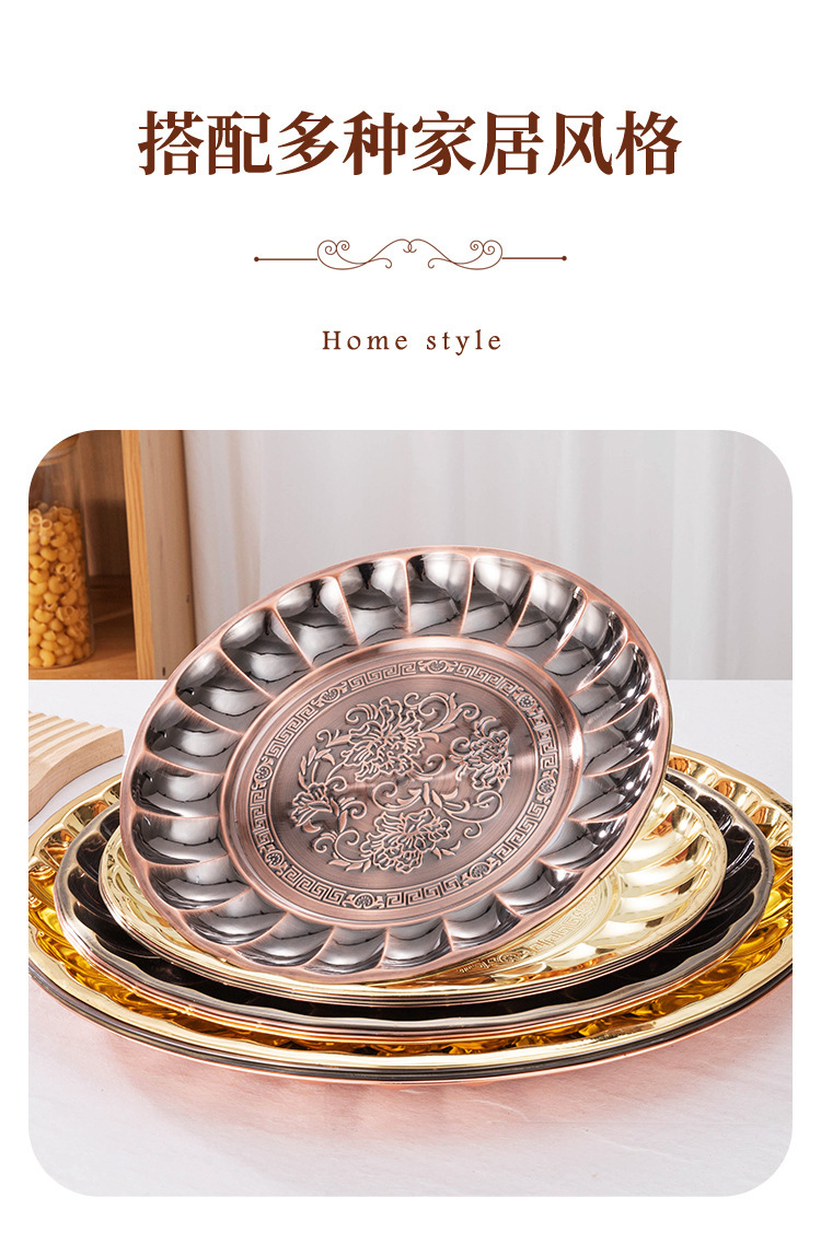국경 간 대외 무역 스테인레스 스틸 백합 트레이 복고풍 빛 럭셔리 대형 트레이 홈 다이닝 트레이 요리 준비 트레이 과일 트레이 도매스토어 가기