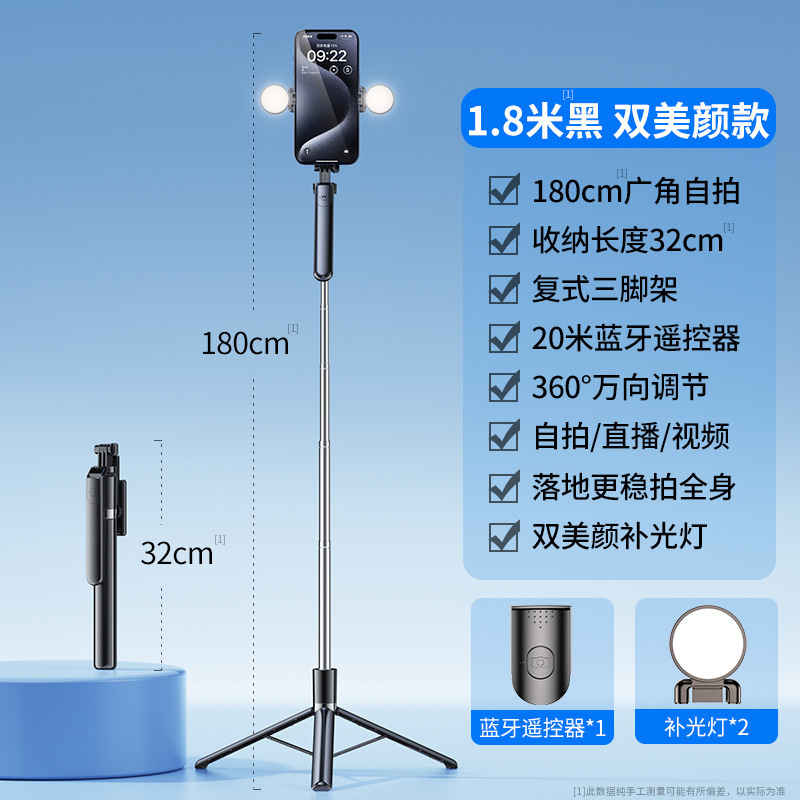 • 1.7m + 뷰티 램프 x2 [탄소 합금강 원격 제어 촬영 블루투스] 이중 삼각형 용골 강화 삼각대