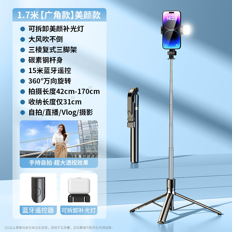 • 1.7m + 뷰티 램프 x1 [탄소 합금강 원격 제어 촬영 블루투스] 이중 삼각형 용골 강화 삼각대