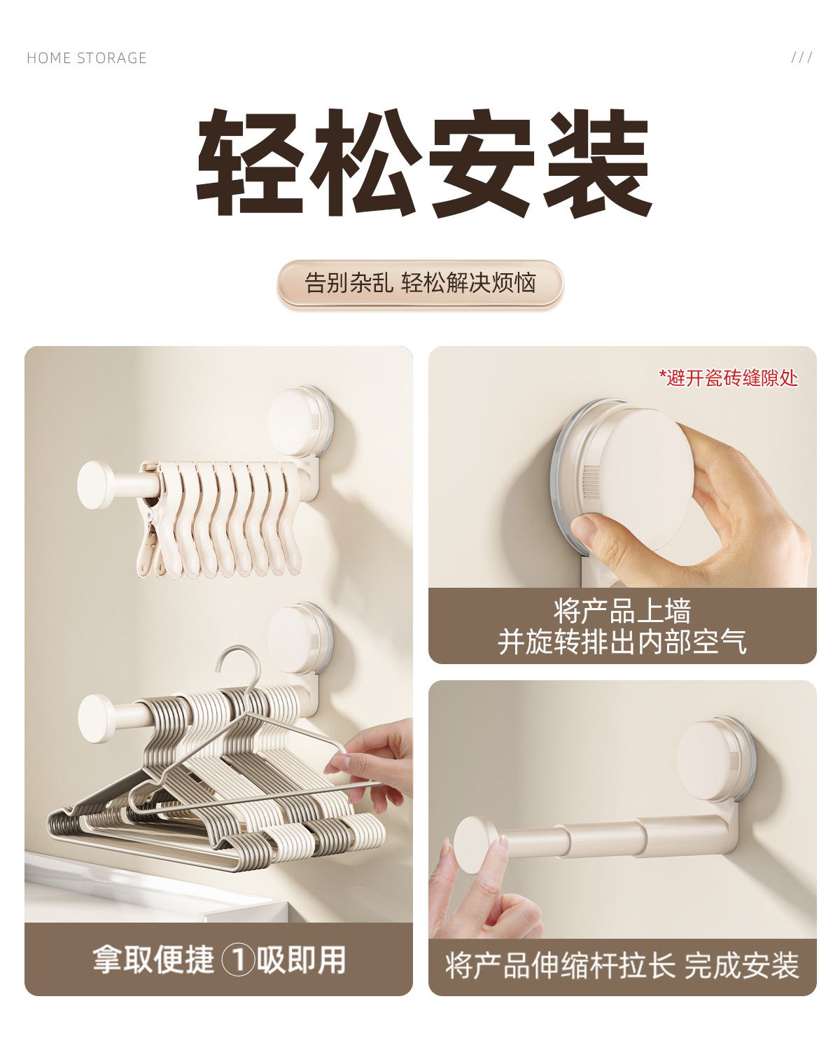 가정용 발코니용 흡입 컵 옷걸이 보관 유물 다기능 텔레스코픽 펀치 프리 및 흔적 없는 옷걸이 벽걸이형