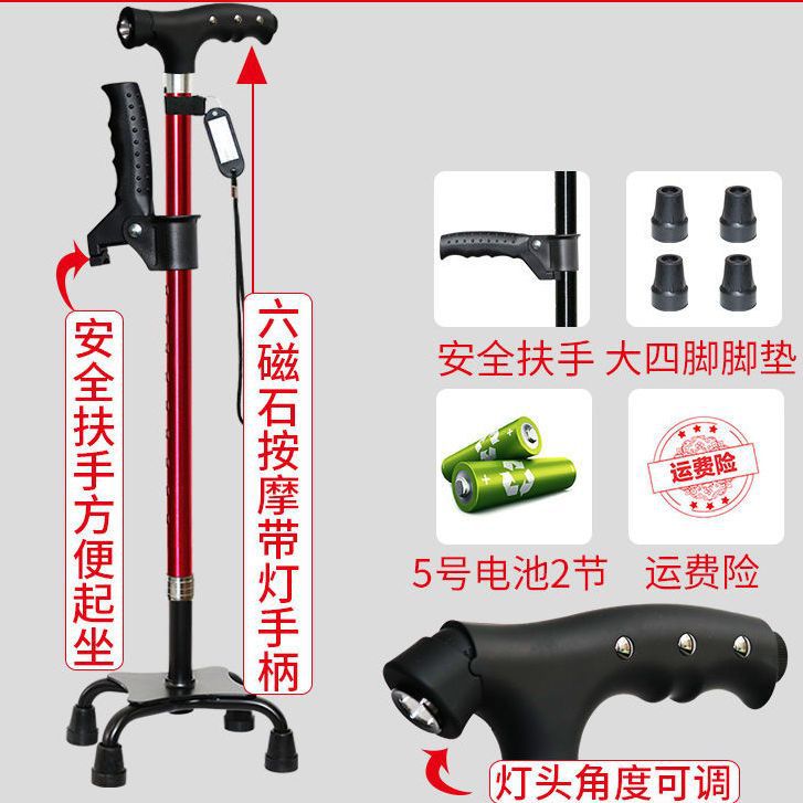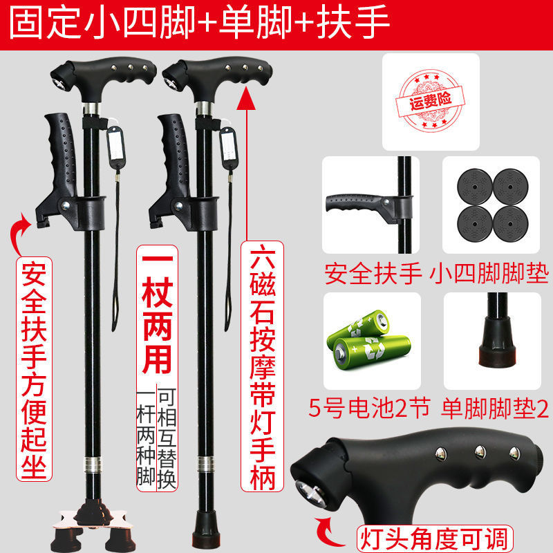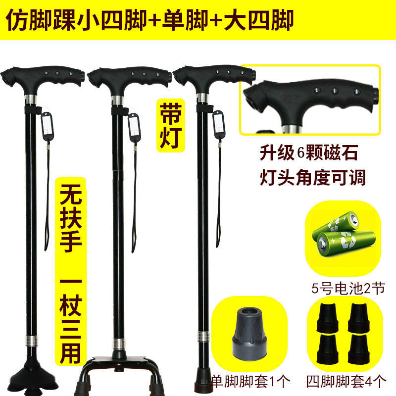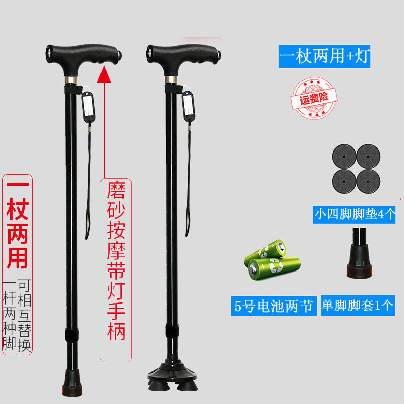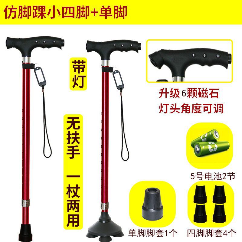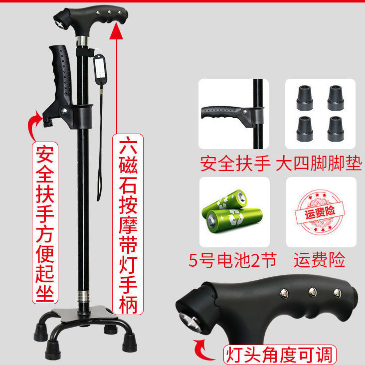 노인을 위한 빛이 있는 4개의 다리 지팡이, 노인을 위한 다기능 알루미늄 합금 경량 미끄럼 방지 텔레스코픽 지팡이