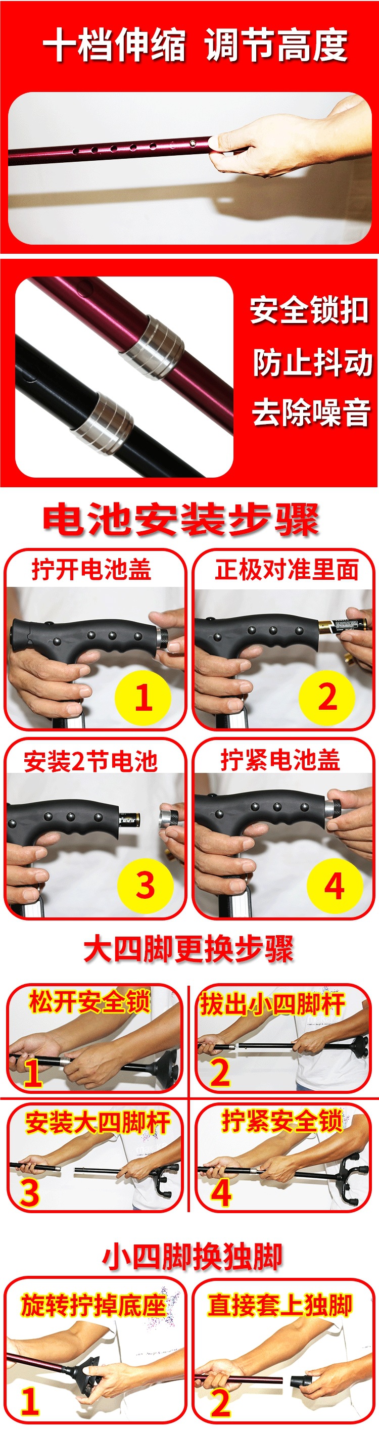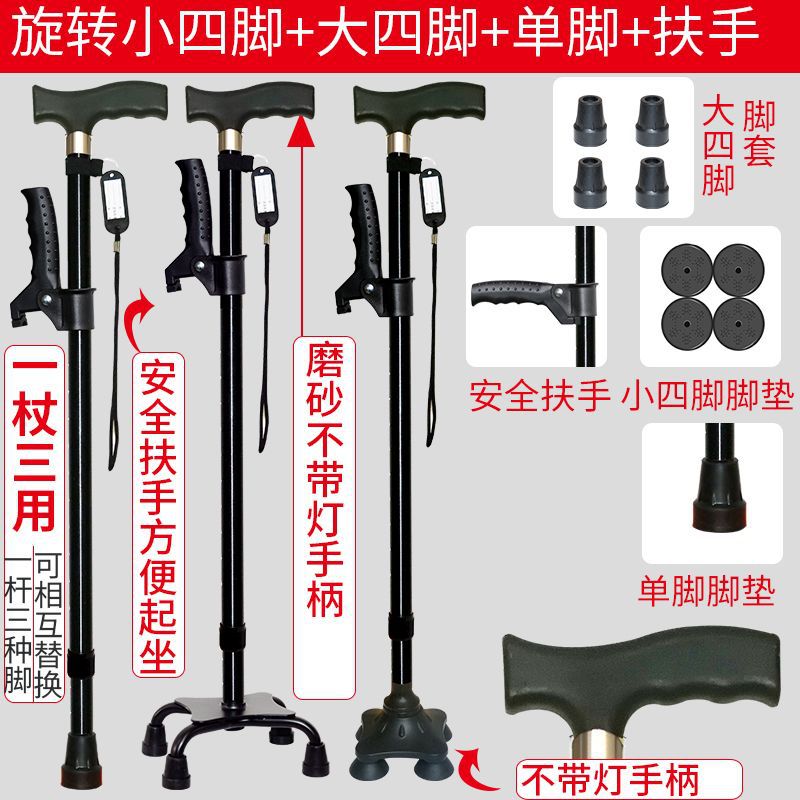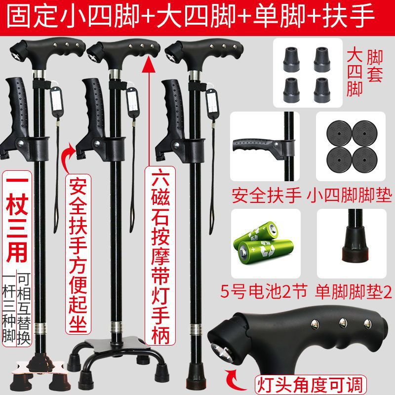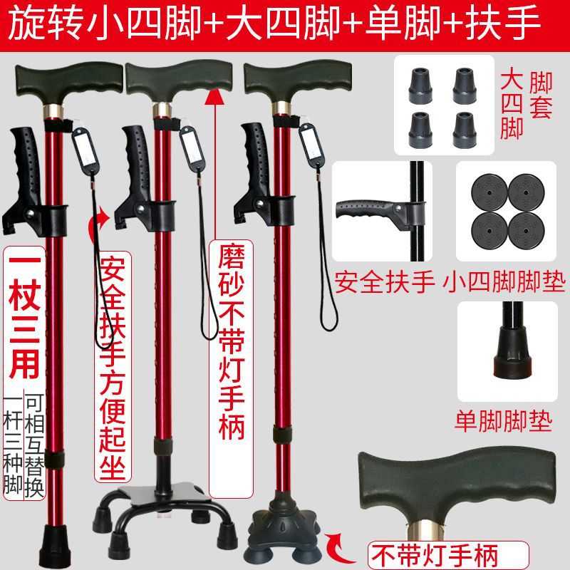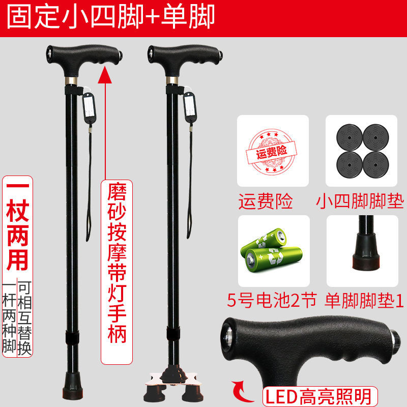 노인을 위한 빛이 있는 4개의 다리 지팡이, 노인을 위한 다기능 알루미늄 합금 경량 미끄럼 방지 텔레스코픽 지팡이