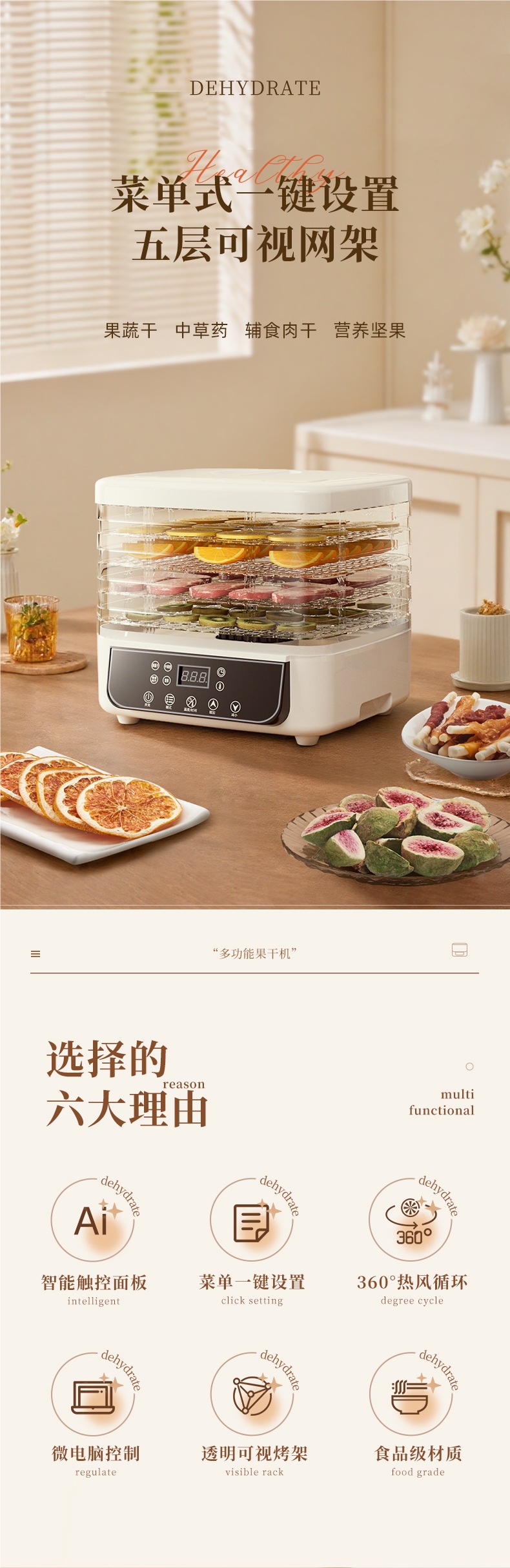 FRUMP 식품 건조기 가정용 소형 건조 과일 기계 과일 및 야채 고기 약 식품 애완 동물 간식 동결 건조 공기 건조기