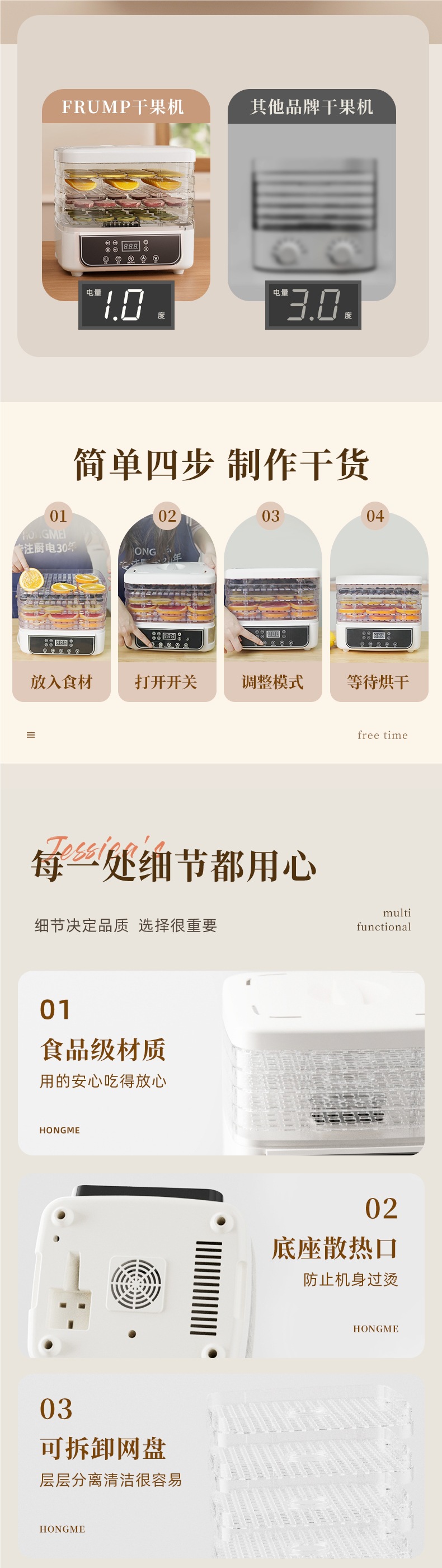 FRUMP 식품 건조기 가정용 소형 건조 과일 기계 과일 및 야채 고기 약 식품 애완 동물 간식 동결 건조 공기 건조기스토어 가기