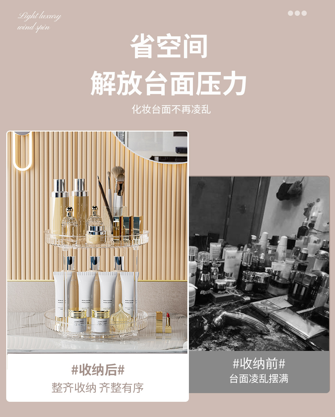 라이트 럭셔리 스타일 회전 스토리지 랙 욕실 턴테이블 화장품 트레이 다층 스토리지 박스 데스크탑 정리 스토리지 박스