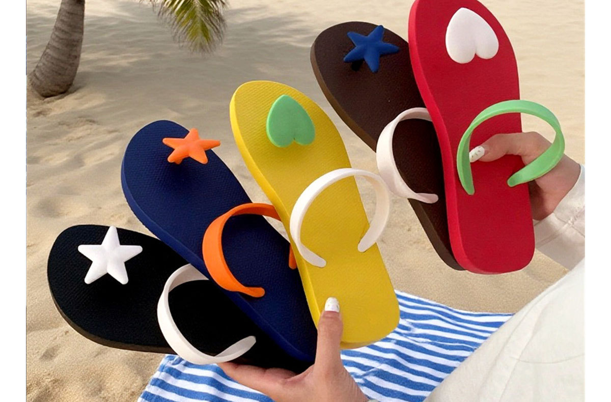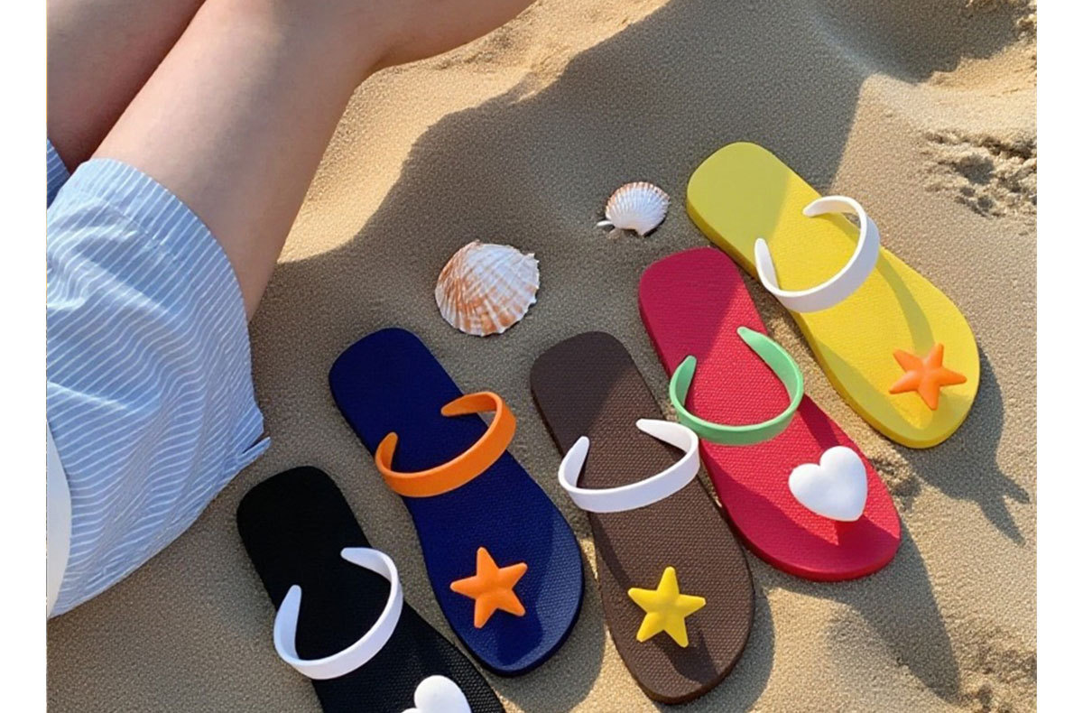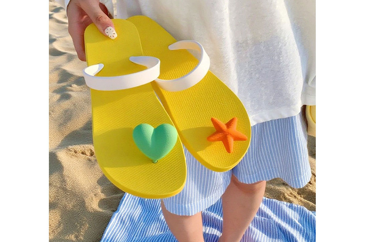 편안한 여름 슬리퍼, 한국 스타일 학생용 해변 슬리퍼, 여성용 캐주얼 휴가 스타일 하트 스타 모양 슬리퍼스토어 가기