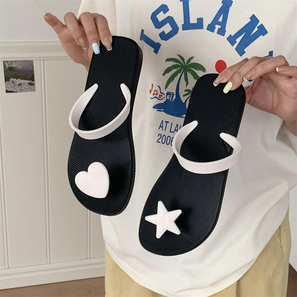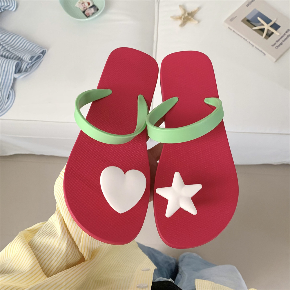 편안한 여름 슬리퍼, 한국 스타일 학생용 해변 슬리퍼, 여성용 캐주얼 휴가 스타일 하트 스타 모양 슬리퍼