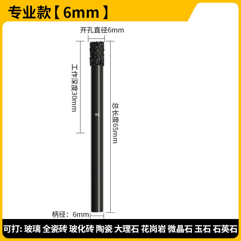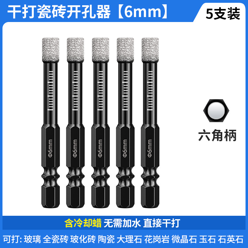 • B 브레이징 건식 타일 드릴 비트 [6mm] 육각 손잡이 5개