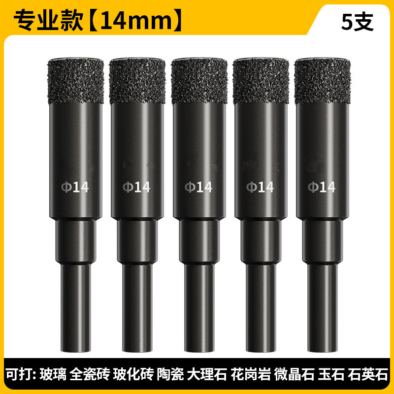 • B 브레이징 건식 타일 드릴 비트 [14mm] 육각 손잡이 5개