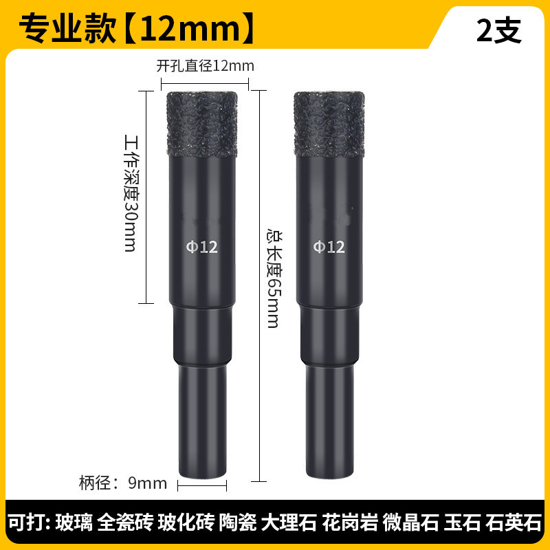 • B 브레이징 건식 타일 드릴 비트 [12mm] 육각 손잡이 2개
