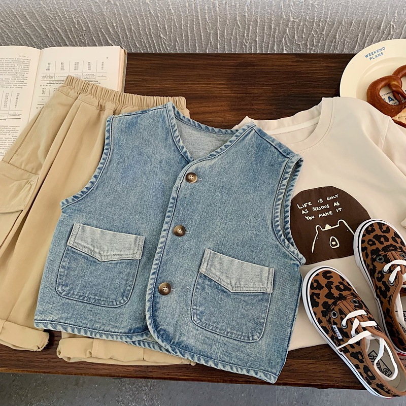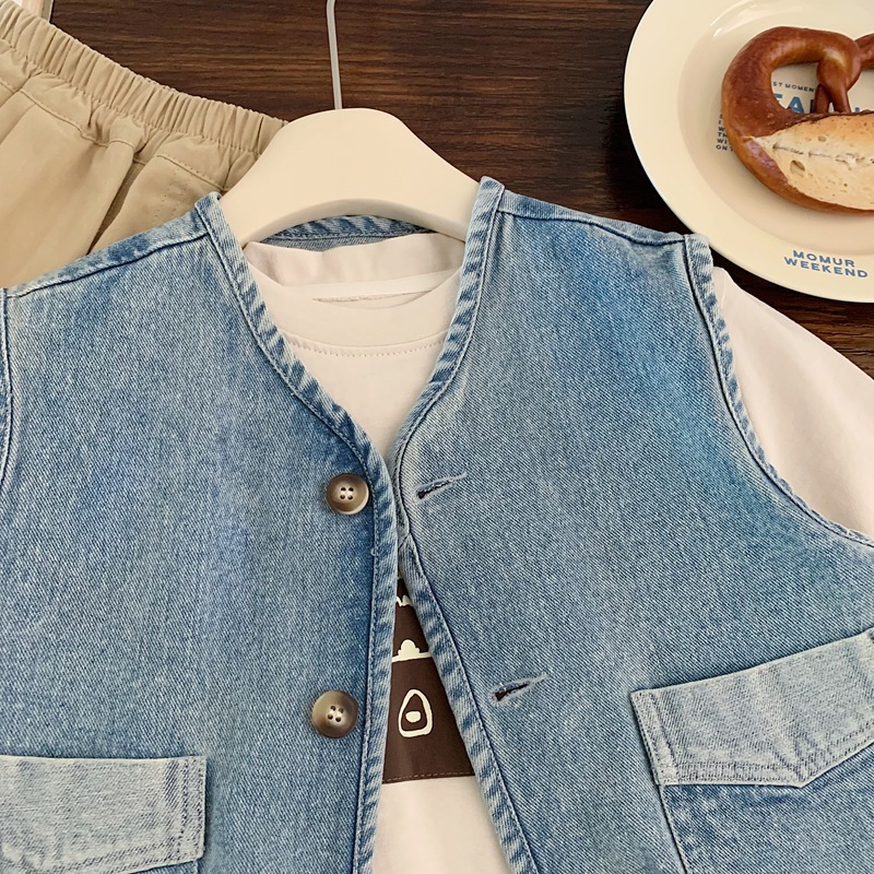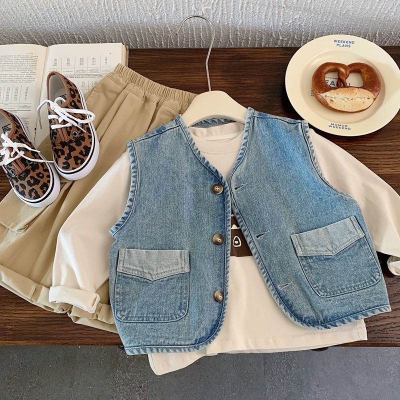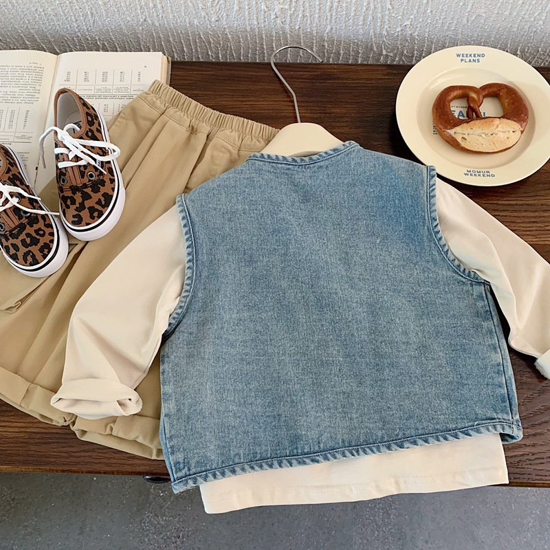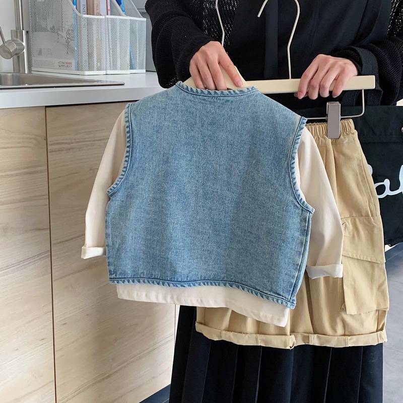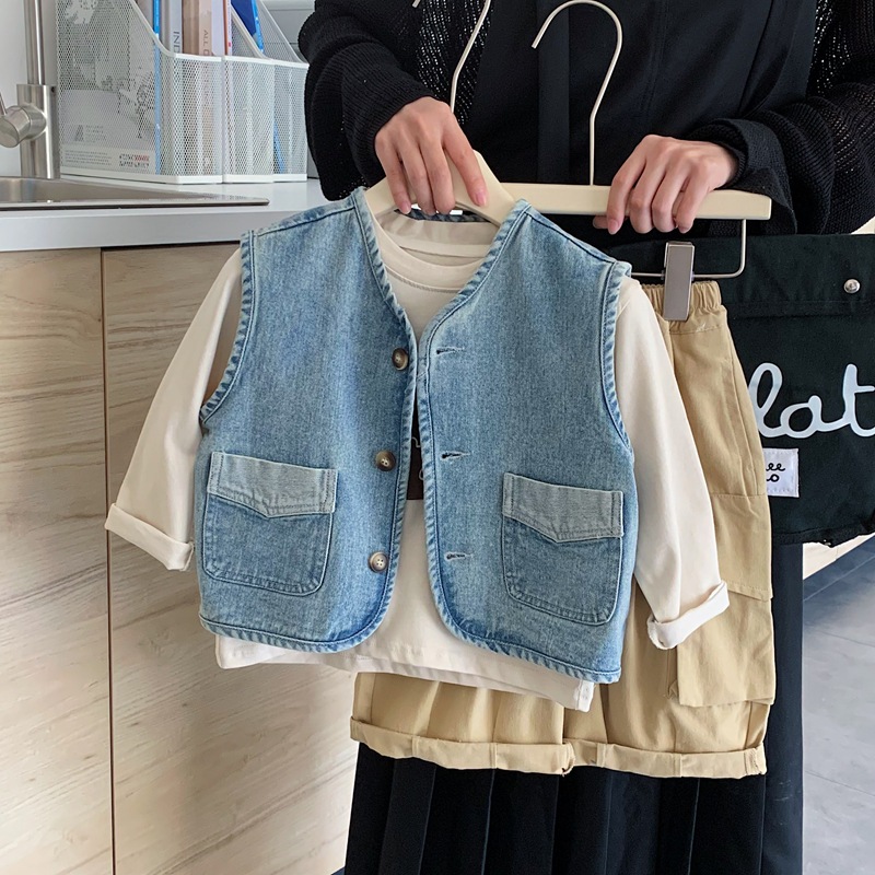 어린이 데님 조끼 소년 봄, 가을 겉옷 2025 새로운 아기 조끼 어린이 가을 복고풍 소년 조끼스토어 가기