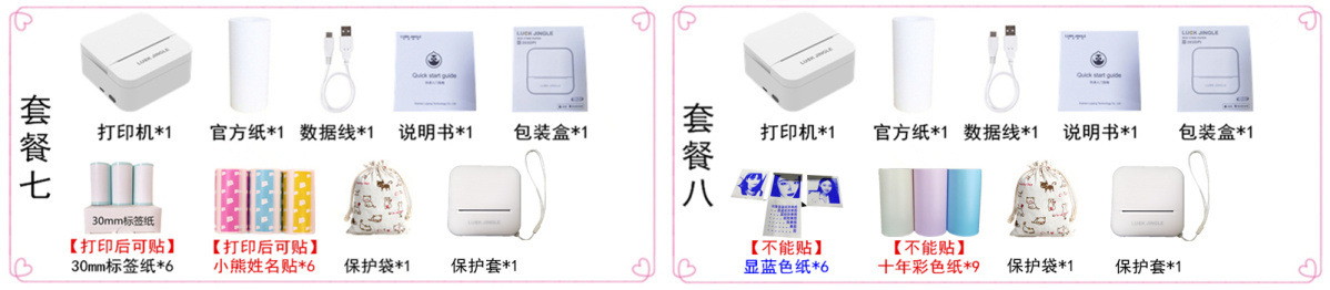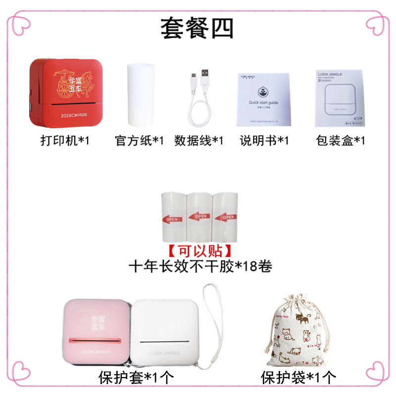 • Guochao 한정판 중국 빨간색 [초다기능 투명 모델] - 표준 구성 + 자체 접착 용지 30롤 + 보호 커버 + 가방