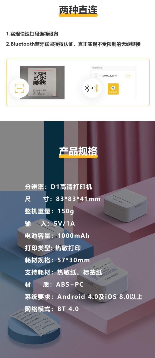 • 클래식 버전 D1 화이트 [초다기능 투명 모델] - 표준 구성 + 자체 접착 용지 30롤 + 보호 케이스 + 가방