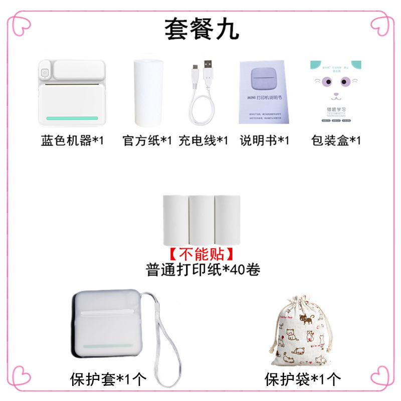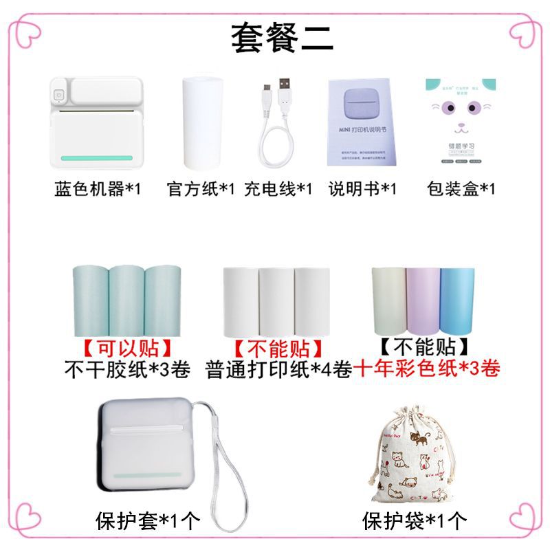 • Meow Xue Wang Blue의 클래식 버전 [초다기능 고화질 모델] - 표준 구성 + 일반 용지 40롤 + 보호 커버 + 가방