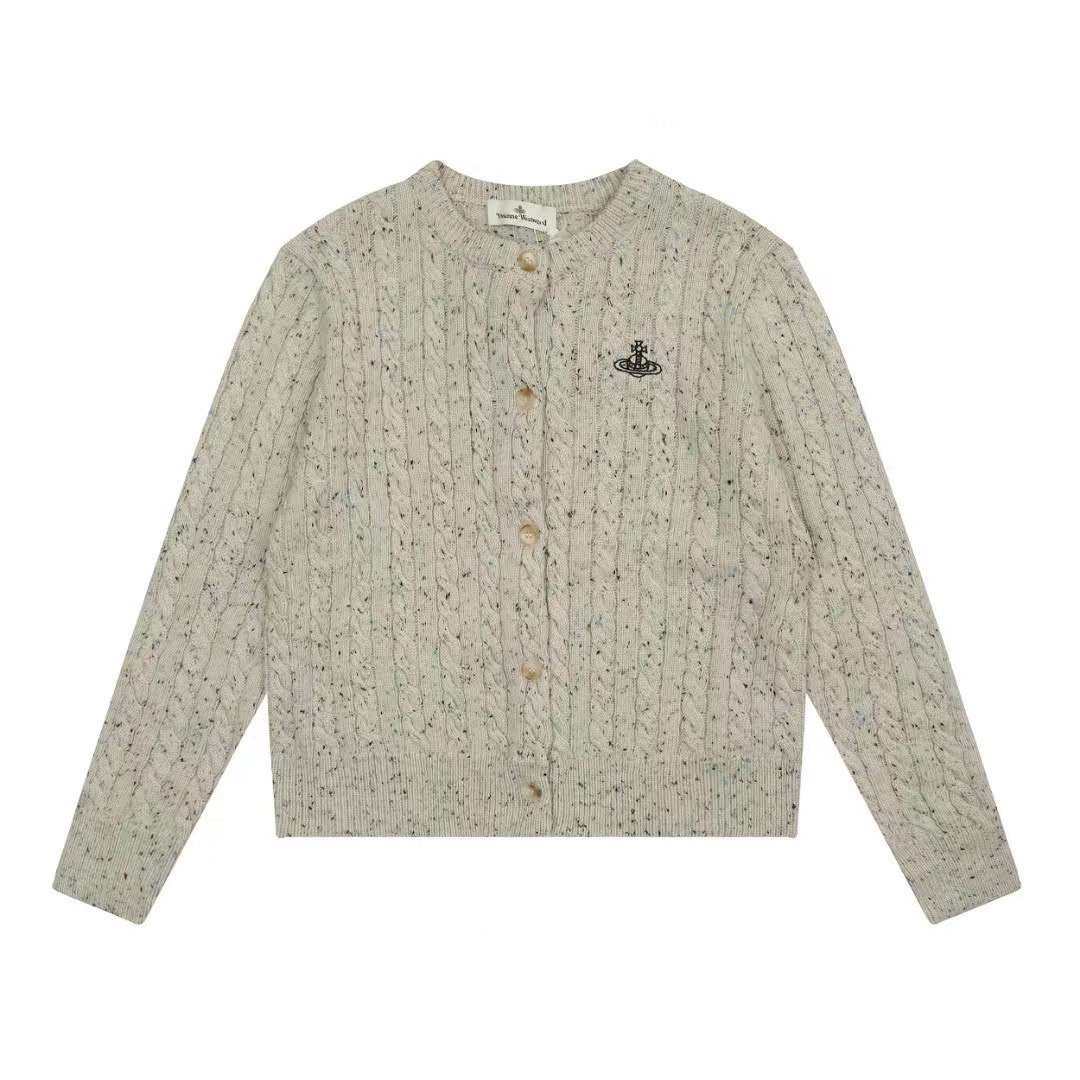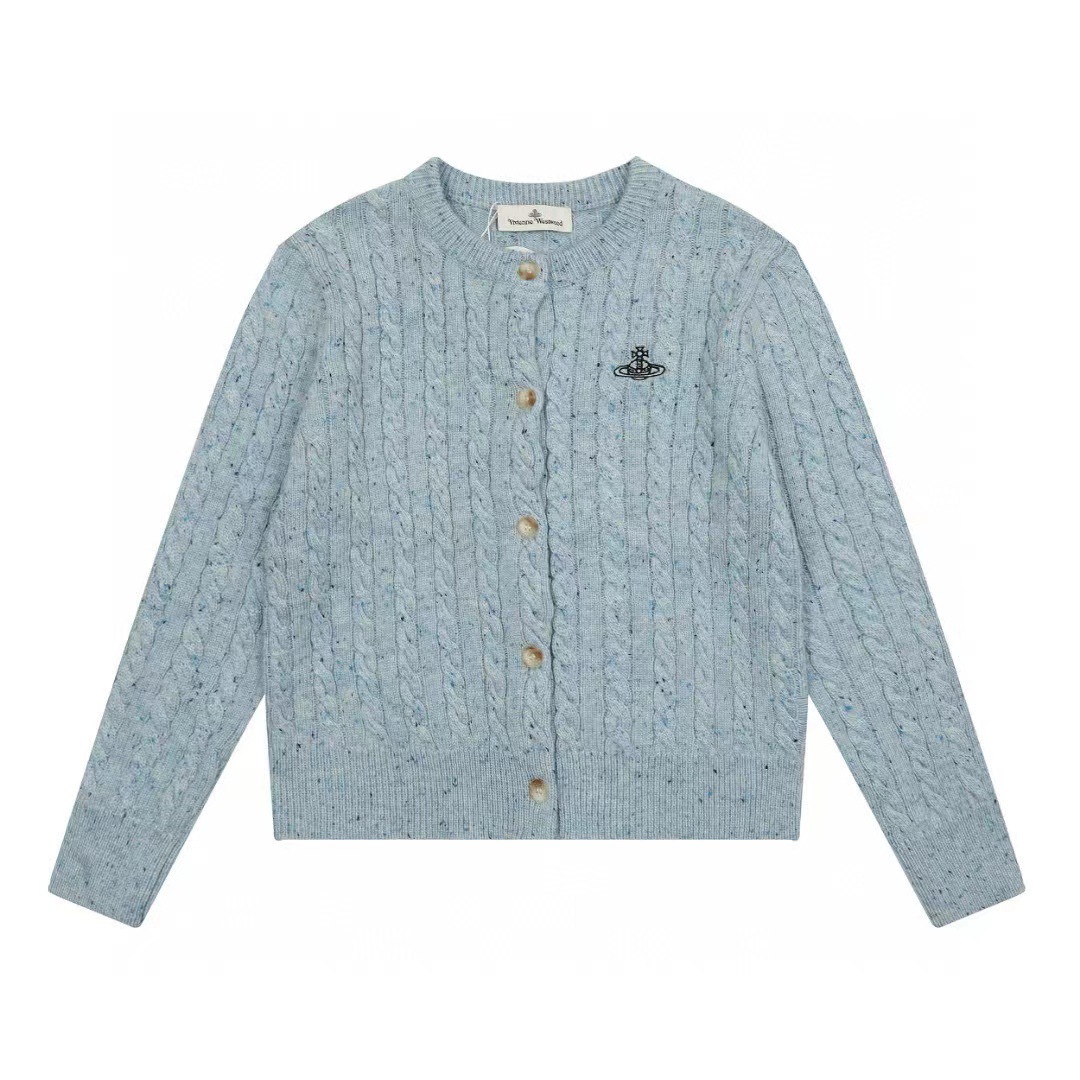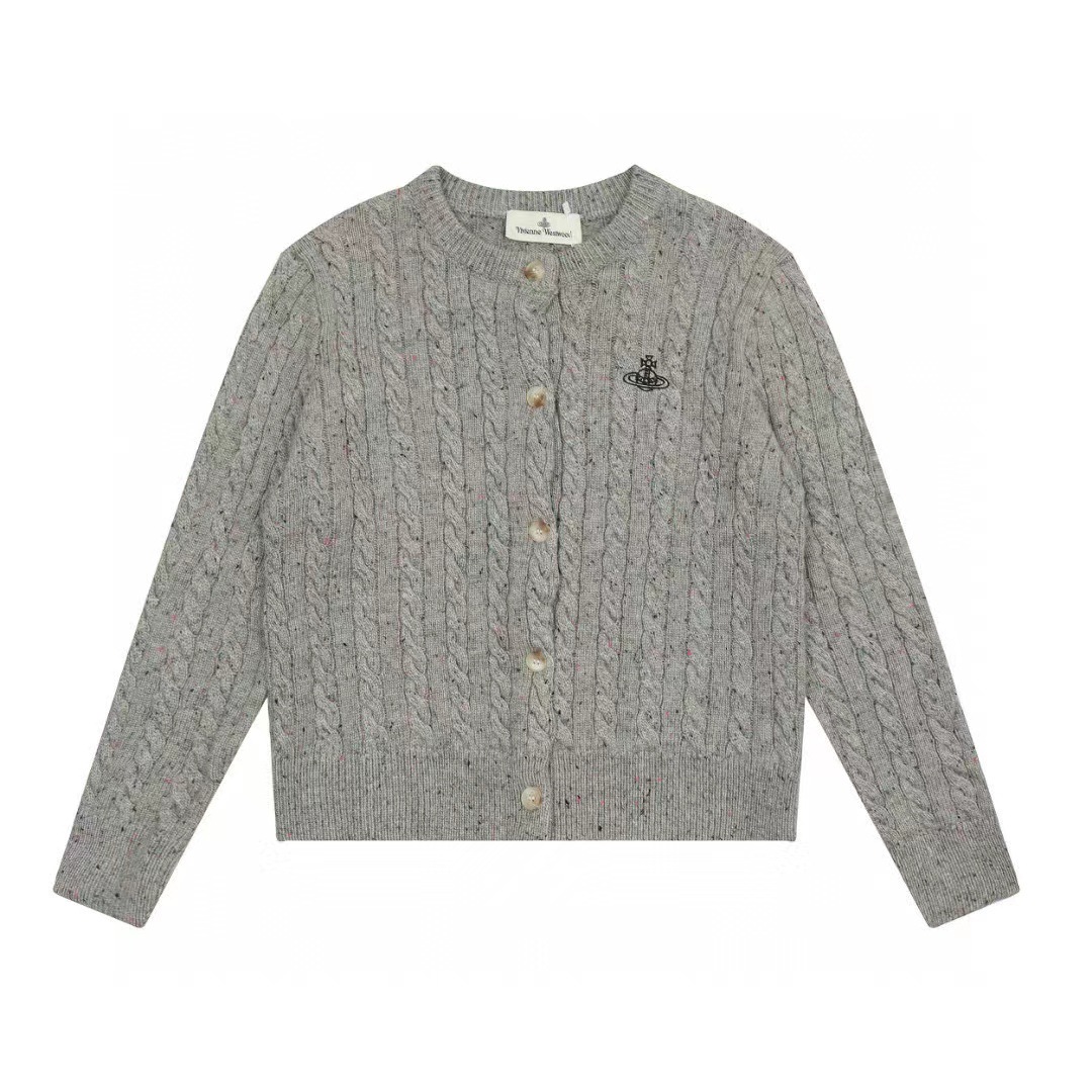 vivienne west wood 웨스트 퀸 엘리자베스 토성 레터 트위스트 여성 울 혼방 스웨터 니트 가디건