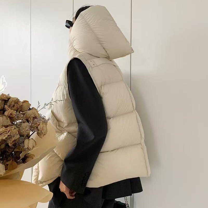 고급 90% 백오리털 후드 다운 조끼 여성용 2025 가을 겨울 패션 대형 포켓 퍼프 스타일 크로스보더 조끼 트렌드스토어 가기