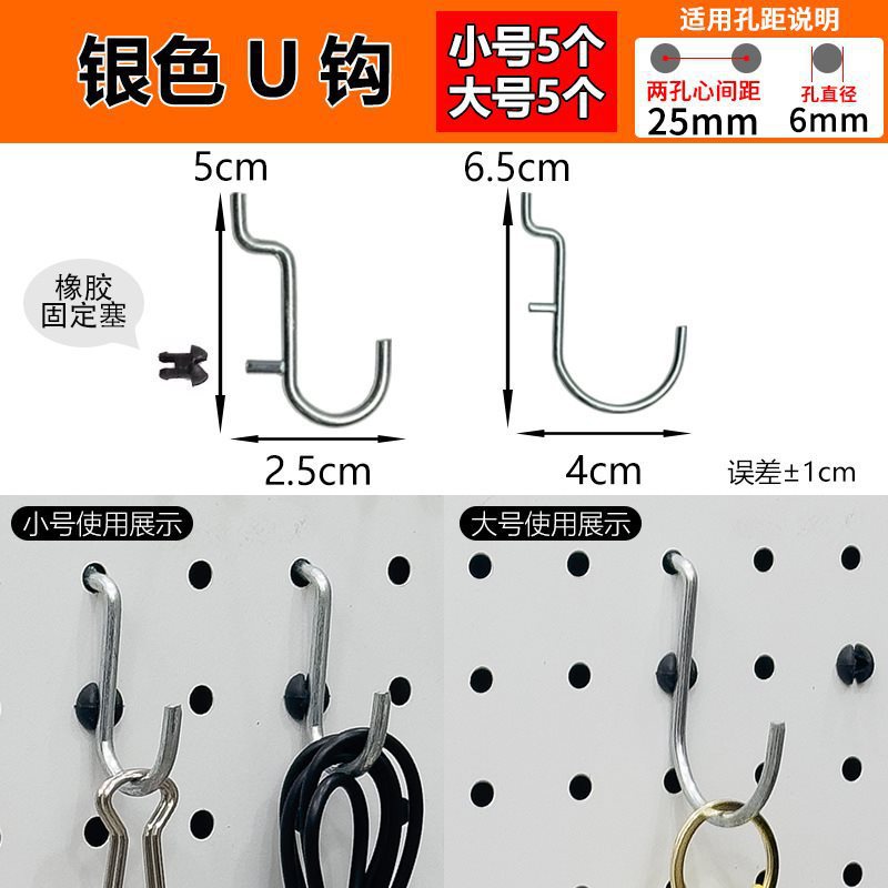 홀 피치 25 홀 보드 후크 액세서리 자기 스토리지 랙 둥근 구멍 범용 데스크 스토리지 슈퍼마켓 선반 걸이 바구니 부품스토어 가기