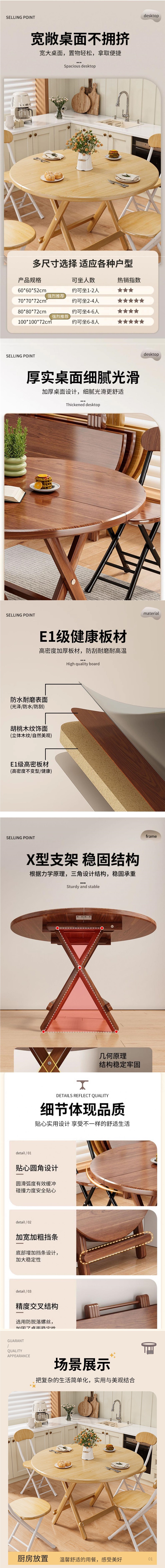 • 원래 색상 두꺼워진 80cm 원형 표면 [설치가 필요 없고 보관이 용이함] 테이블 높이 72CM