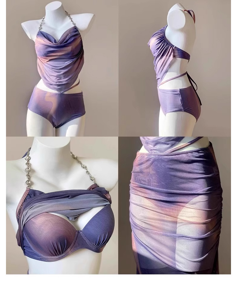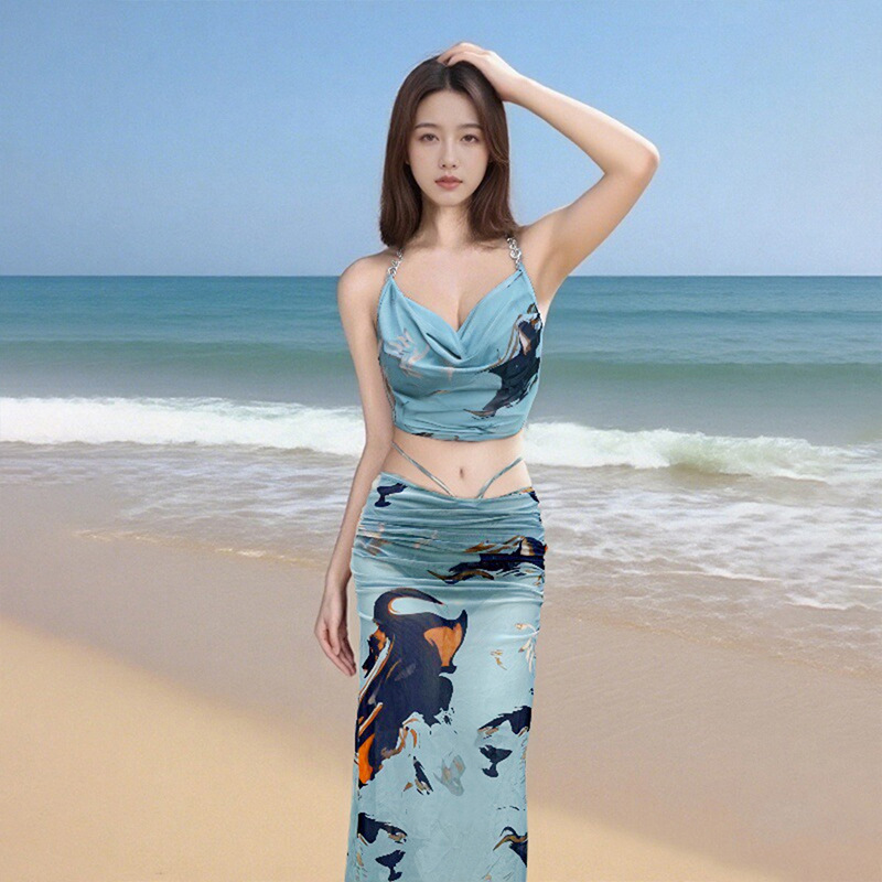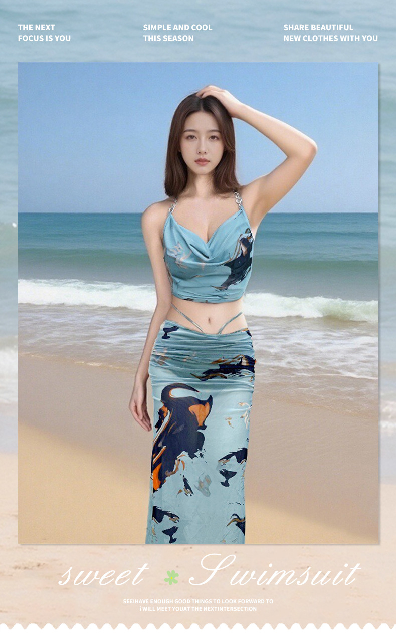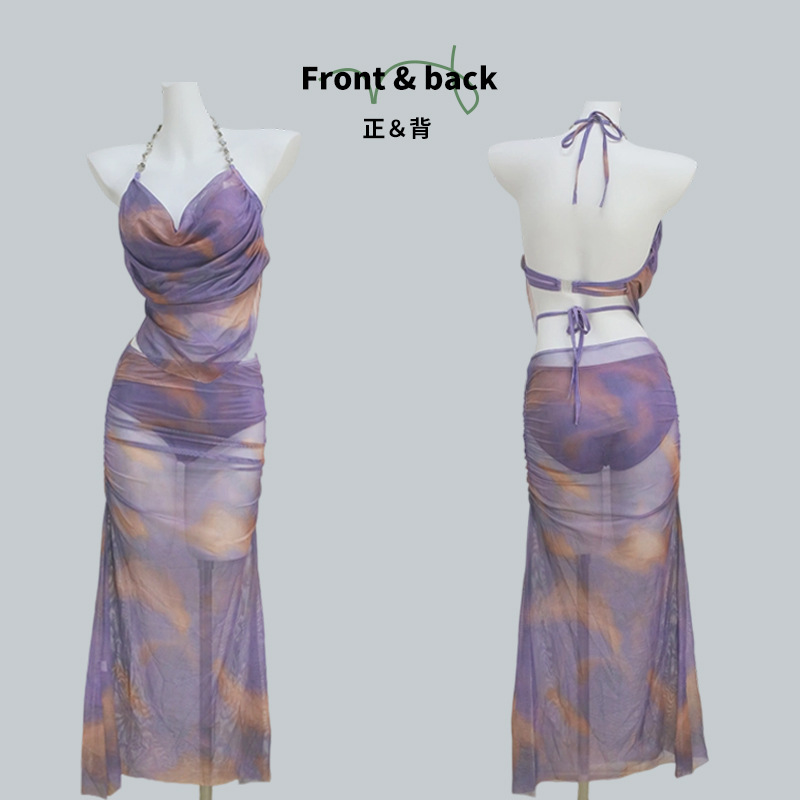 수영복 여성 2025 새로운 3 피스 비키니 섹시한 롱 스커트 언더와이어 푸시 업 해변 휴가 수영복 도매