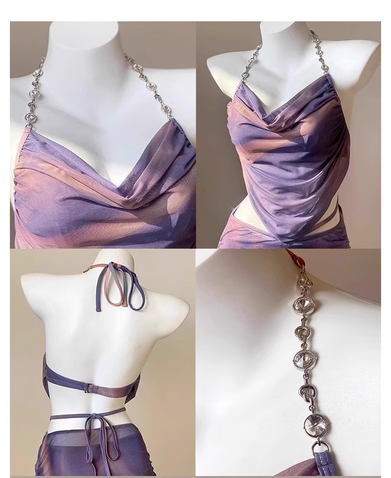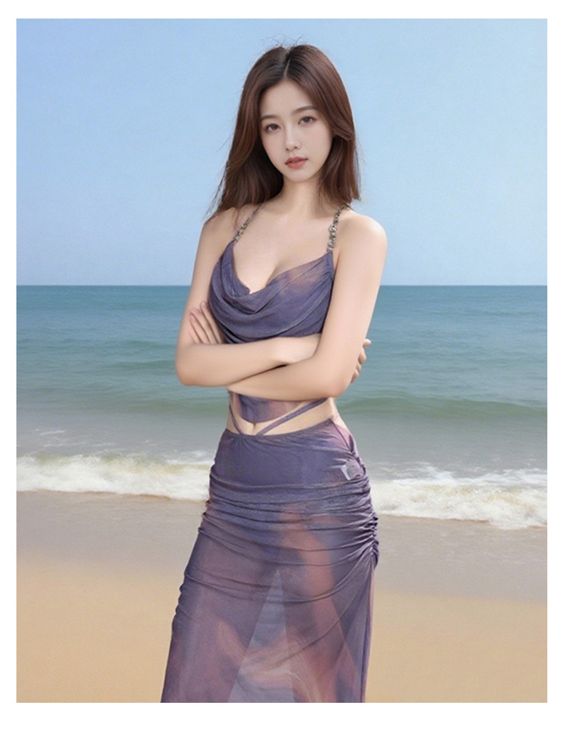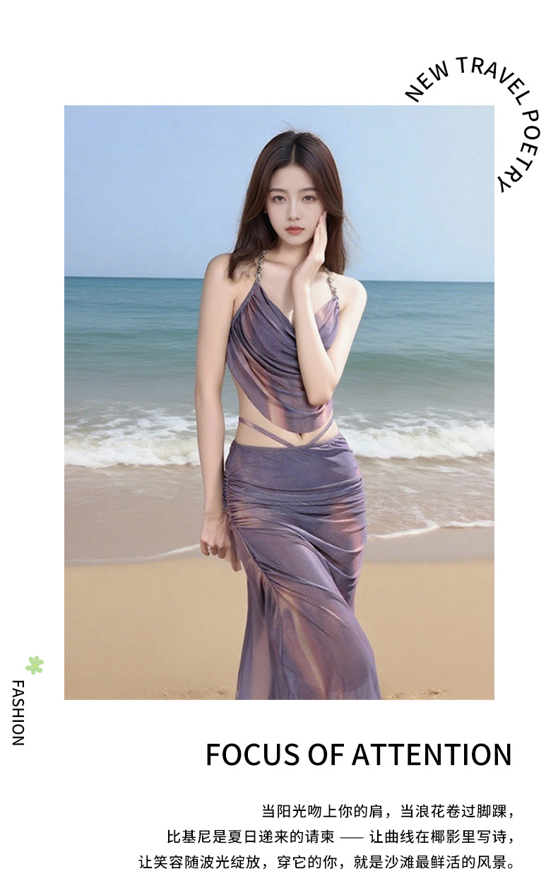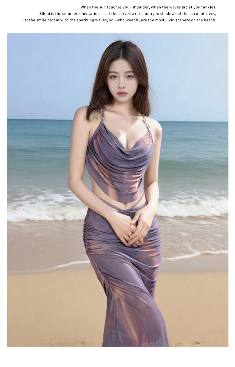 수영복 여성 2025 새로운 3 피스 비키니 섹시한 롱 스커트 언더와이어 푸시 업 해변 휴가 수영복 도매
