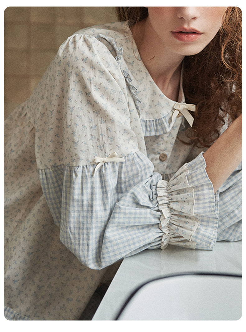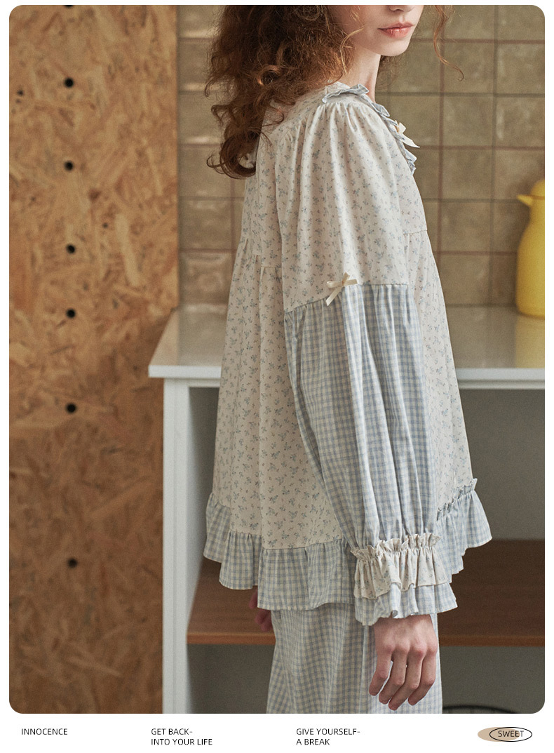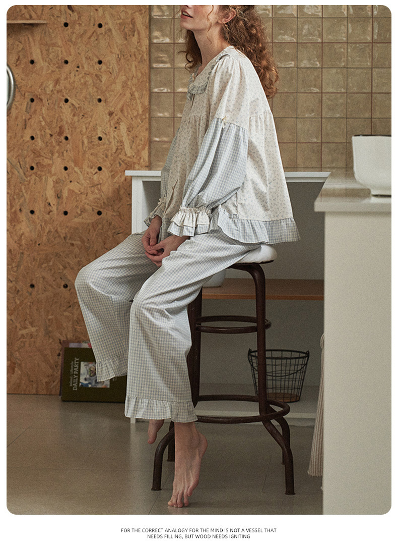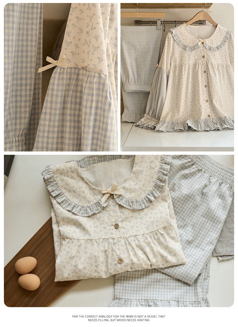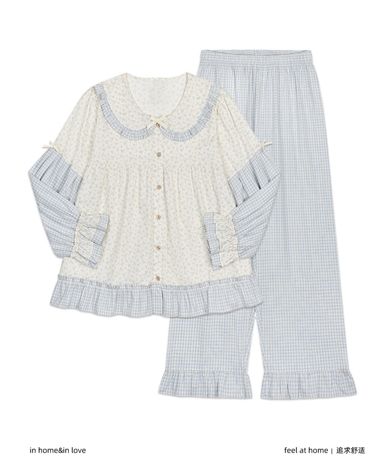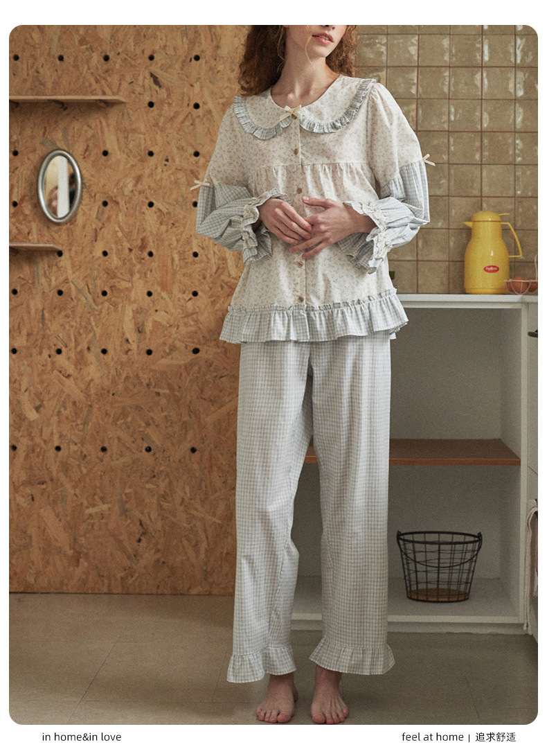 한국 잠옷 가을 순면 달콤한 스플 라이스 인형 칼라 긴팔 바지 홈웨어는 여성 의류 도매 외부에 착용 가능