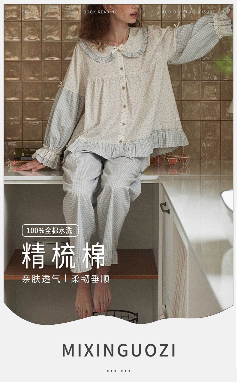 한국 잠옷 가을 순면 달콤한 스플 라이스 인형 칼라 긴팔 바지 홈웨어는 여성 의류 도매 외부에 착용 가능스토어 가기